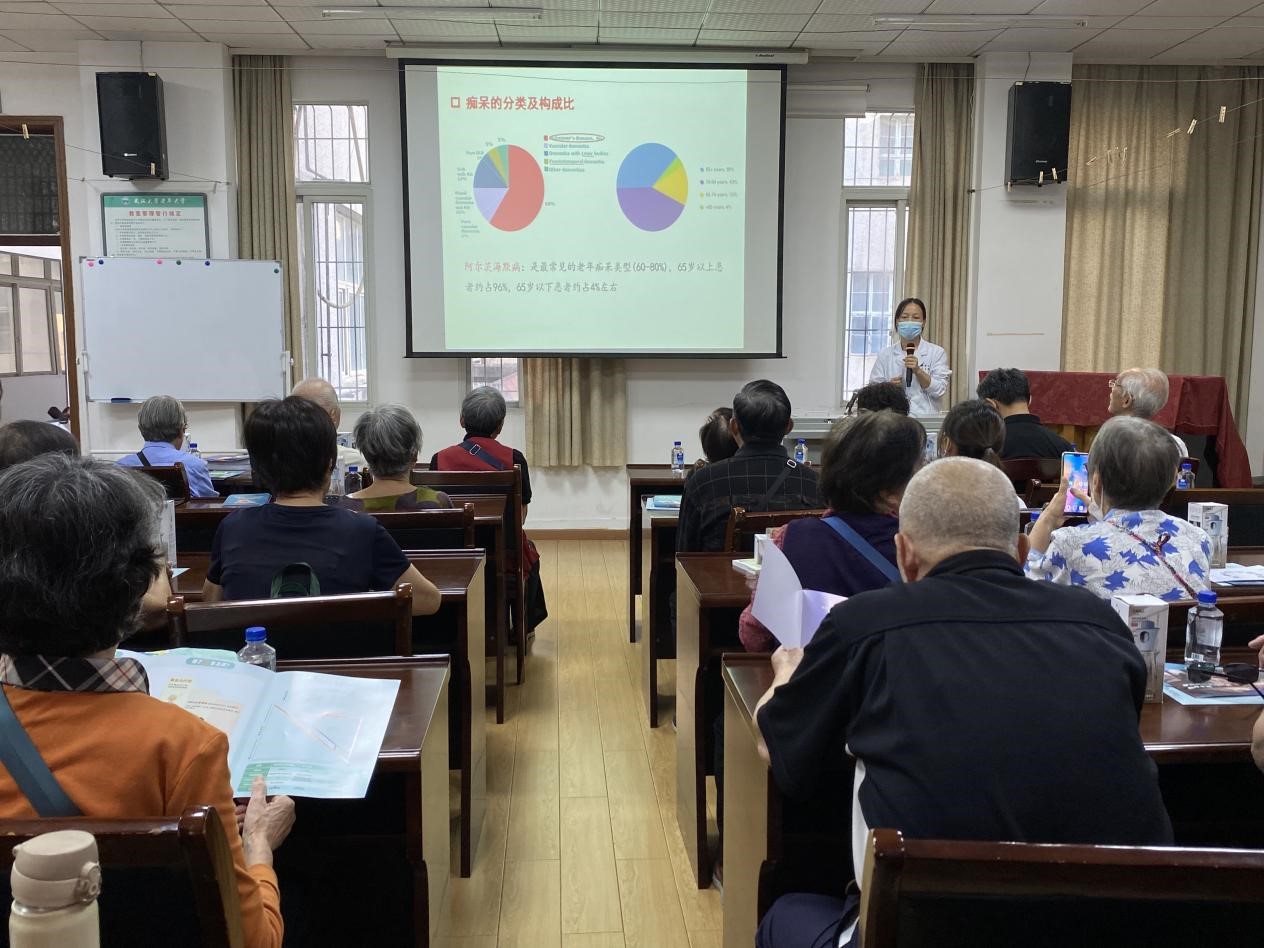 熊婧教授强调了在当前社会老龄化背景下,关注老年神经健康、提高自我防治能力的重要性。牛璇和肖婷婷医生,分别用通俗易懂的语言、生动详实的案例,为老同志们介绍了关于老年痴呆的识别、治疗及预防,脑卒中的识别、治疗及预防的相关知识。讲座结束后,三位医生及相关工作人员为老同志进行慢性病患者健康管理系列咨询及检测认知(记忆力)。