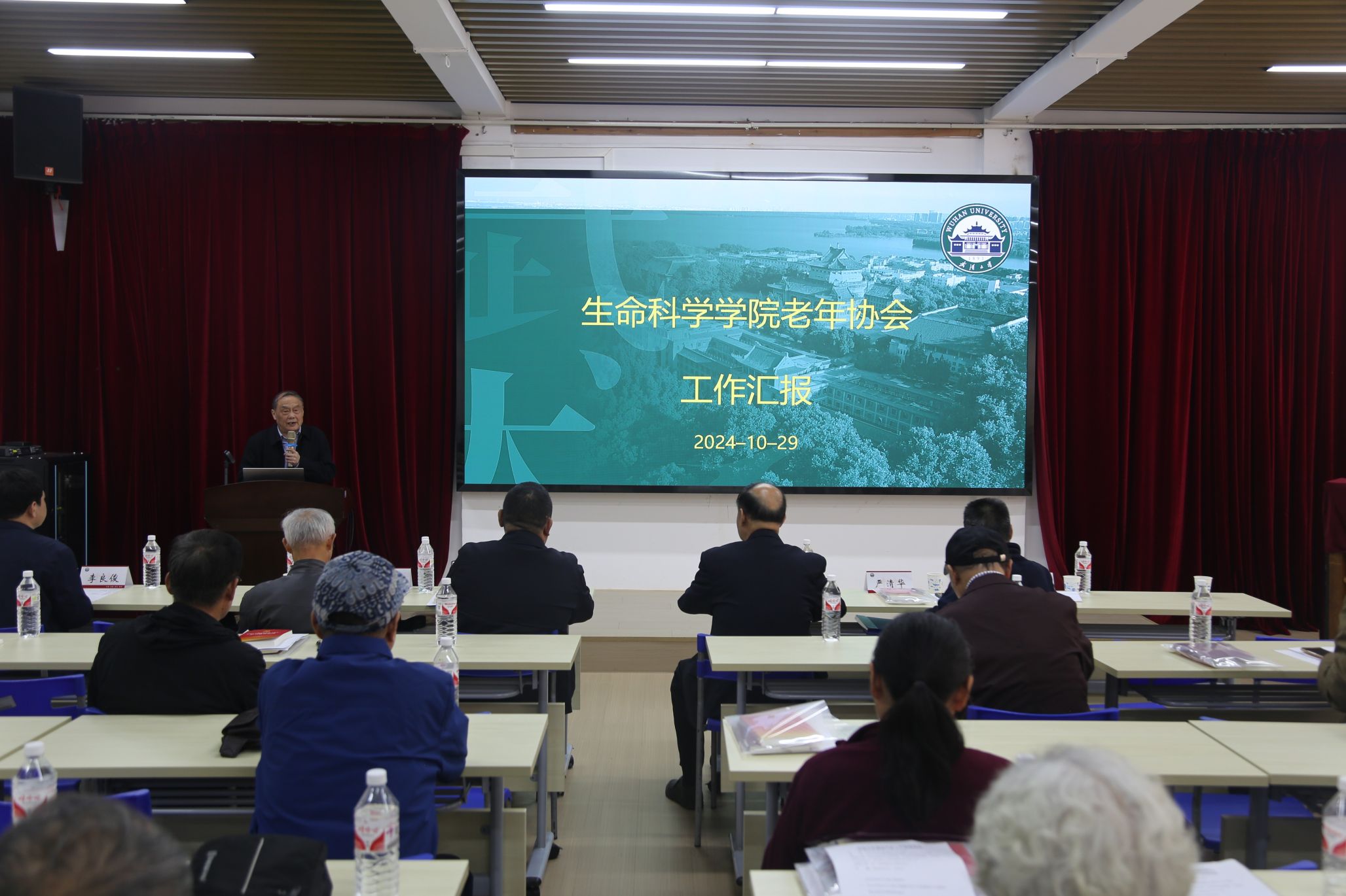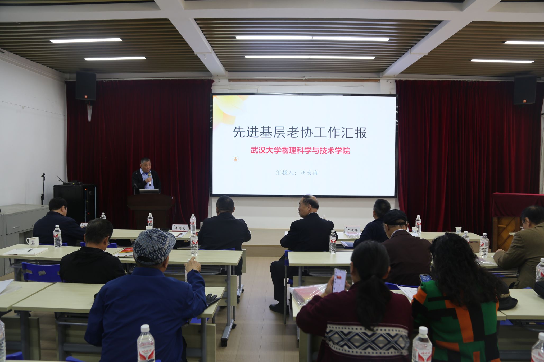 物理科学学院老年协会会长汪大海、生命科学学院老年协会会长安志东代表先进基层老年协会作经验交流。(文:梁芳 图:那乾坤)