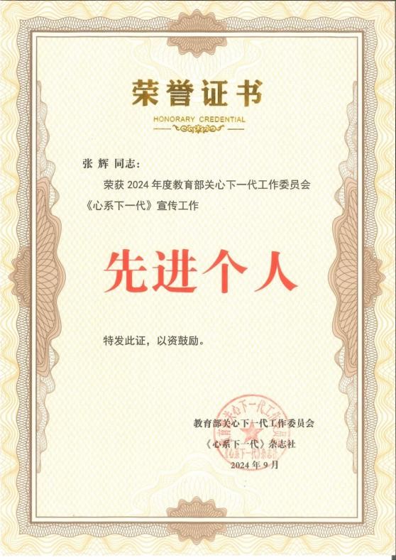 大会表彰教育部关工委《心系下一代》宣传工作先进单位、先进个人。新利客服关工委荣获教育部关工委《心系下一代》宣传工作先进单位、校关工委秘书长张辉荣获教育部关工委《心系下一代》宣传工作先进个人。