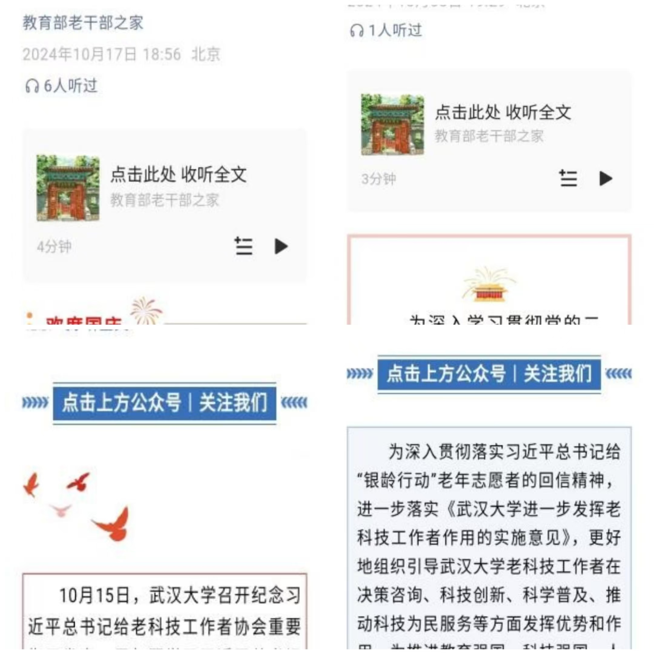 “敬老月”期间,新利18xl通过教育部官网、中国老科协官微、湖北省老干部官微、湖北日报、学校官网等校内外媒体平台推送老同志活动新闻20余篇,积极宣传报道活动开展情况,营造了良好的尊老敬老氛围。