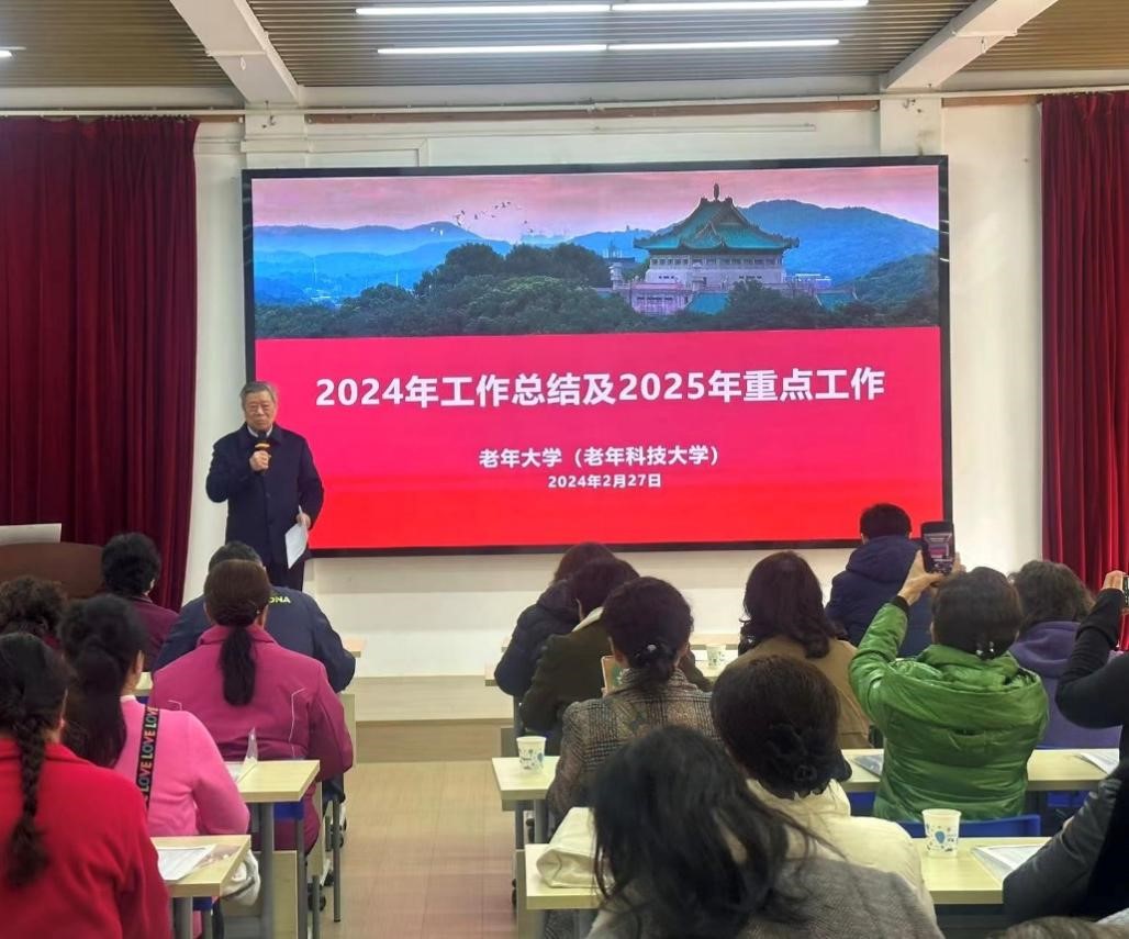 夏建国充分肯定了2024年我校老年大学(老年科技大学)工作取得的优异成绩,对老年大学办公室工作人员和全体班长的付出表示衷心感谢,并对2024年工作进行了总结及2025年重点工作全面部署。