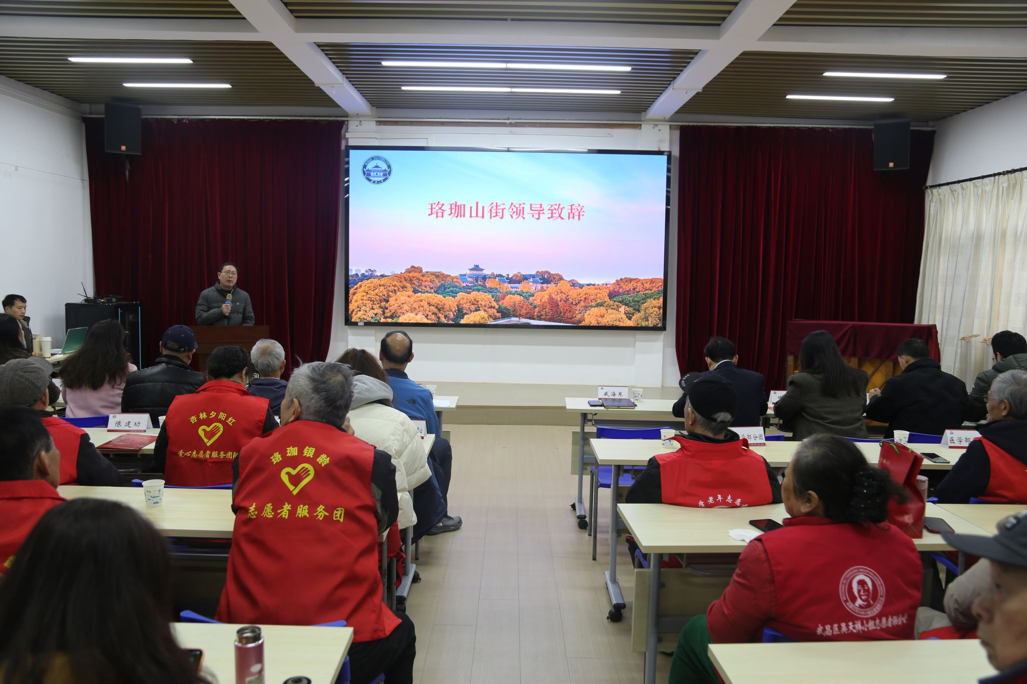 珞珈山街道副主任戚海东在致辞中高度评价志愿服务团的整合升级,对十年坚守持续奉献爱心的老年志愿者们致以崇高的敬意,并表示珞珈山街道将全力以赴为志愿服务团搞好保障和服务,携手努力让银龄之光在珞珈山更加闪耀。