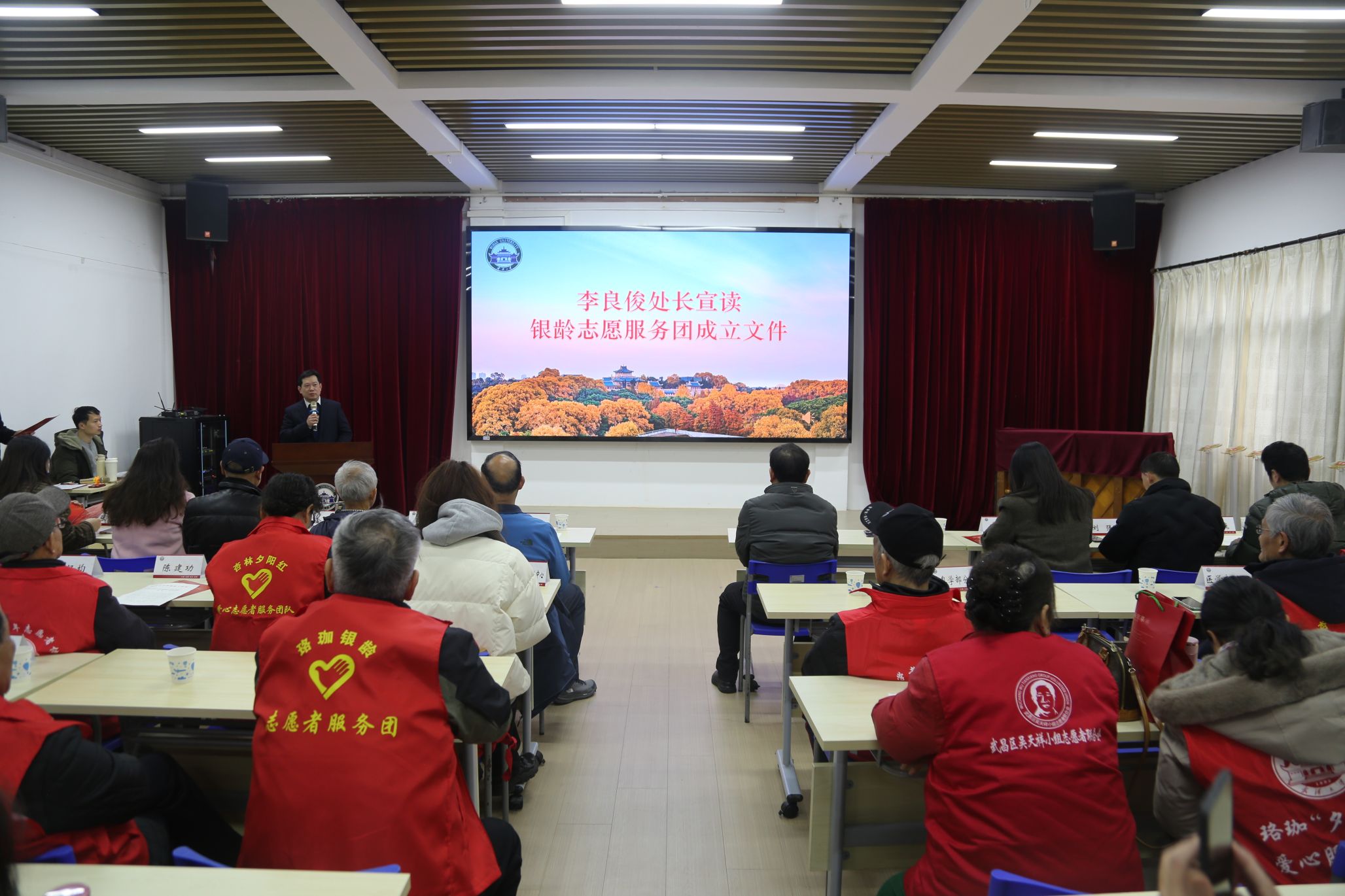 2025年3月4日,全国第62个“学雷锋纪念日”前夕,新利18平台登录入口113室内温情涌动,珞珈银龄志愿服务团成立仪式隆重举行。珞珈山街道及新利客服四个校区社区负责人,新利客服老年协会、新利18xl、相关职能部门负责人与新利客服银龄志愿者代表、大学生青年志愿者代表等百余人齐聚一堂,共同见证具有特殊意义的时刻。