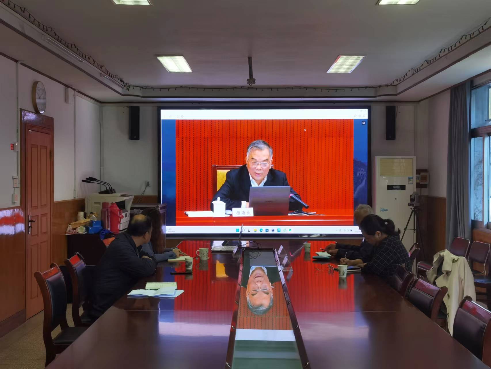 我校校关工委副主任李传义、副秘书长杨红梅、新利18xl副处长吴仪在新利18xl一会议室线上参会。因疫情原因,校关工委其它骨干在家中收看了本次报告会的网络直播。