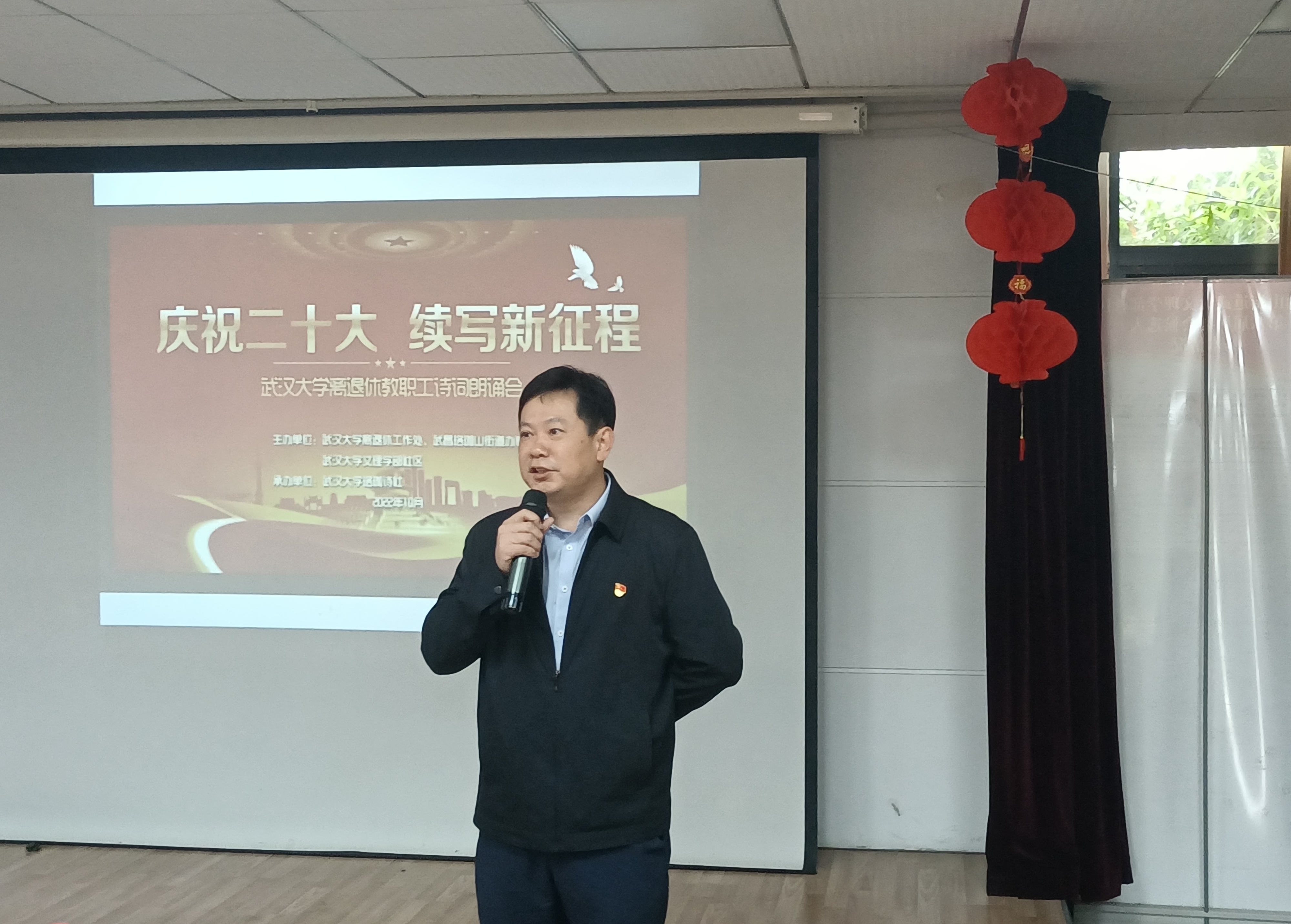 为庆祝中国共产党第二十次全国代表大会胜利召开,新利18平台登录入口、武昌珞珈山街道办事处、新利客服文理学部社区联合举办诗词朗诵会,于10月20日在文理学部社区举行。26位诗词作者克服了疫情散发、家务繁忙、体弱多病、路途遥远等多种困难,兴致勃勃地参加朗诵会,并声情并茂地朗诵自己创作的诗词。他们在诗词朗诵中,热情讴歌中国共产党一百多年的伟大成就,赞美治国理政的丰硕成果,抒发对党、对祖国的挚爱情怀,展现出退休职工不忘初心、踔力奋发、热爱生活的精神风貌,赢得到会领导和诗词爱好者的热烈掌声。本次诗词朗诵会共收到38位诗词爱好者的57首诗词。