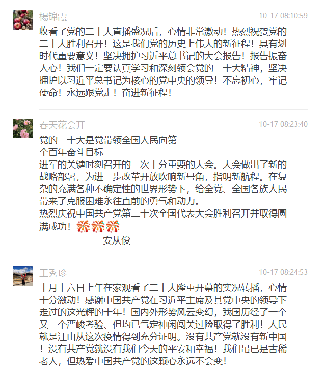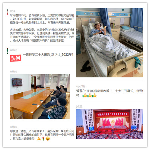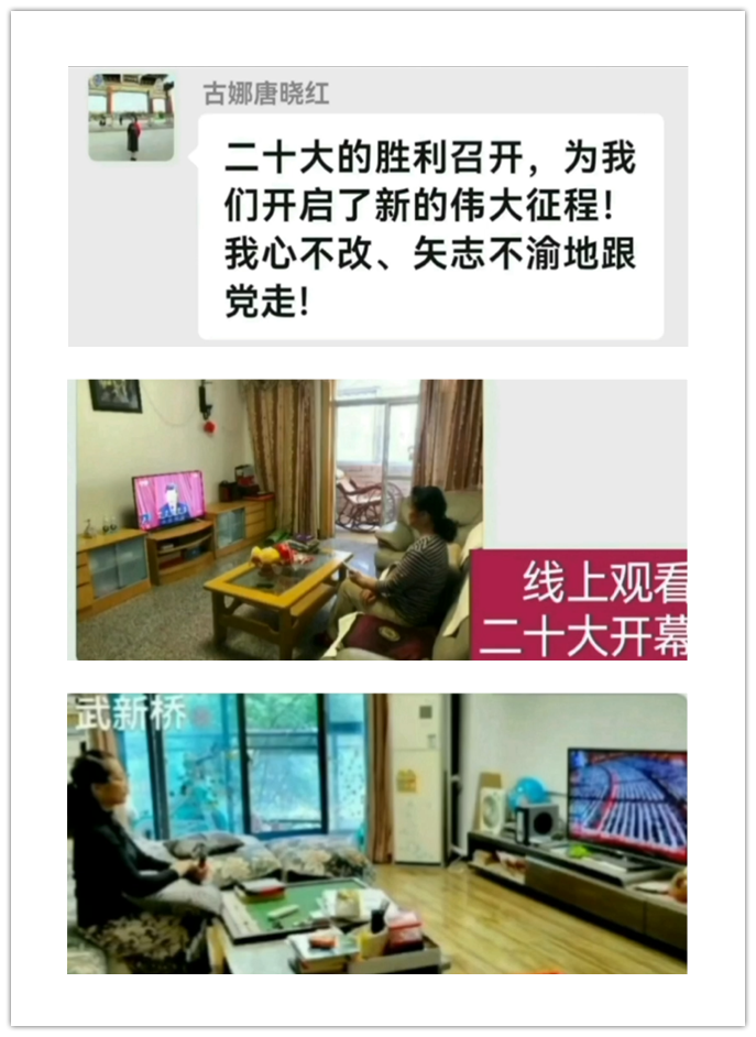 2022年10月16日上午10时,中国共产党第二十次全国代表大会在北京隆重开幕,新利客服老年大学(老年科技大学)组织学员通过电视、网络、广播等多种方式收听收看开幕会直播盛况。各班级学员在各区活动中心、老同志家中,大家全神贯注做好笔记,开展线上交流,掀起学习党的二十大精神热潮。(舒悦)