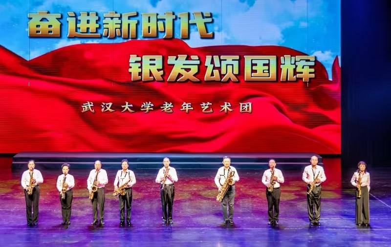 老年艺术团管乐团赴华中师范大学参加湖北省高校离退休教职工文艺交流汇演,演奏作品《歌唱祖国》,团员们身着整齐演出服,精神抖擞地登上舞台,铿锵的铜管乐与深情的旋律,抒发了老同志们对祖国繁荣昌盛的深情礼赞,为观众带来震撼的听觉体验。