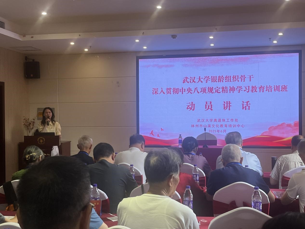 6月18日下午,开班仪式举行。新利18xl副处长张辉作动员讲话,她强调,学校党委和新利18xl高度重视、精心组织此次培训,希望学员们珍惜机会,深入学习红旗渠精神,将其与学习贯彻中央八项规定精神相结合,增强使命感与责任感,发挥勇争先、走在前的头雁作用,引领带动离退休教职工贡献智慧和力量。