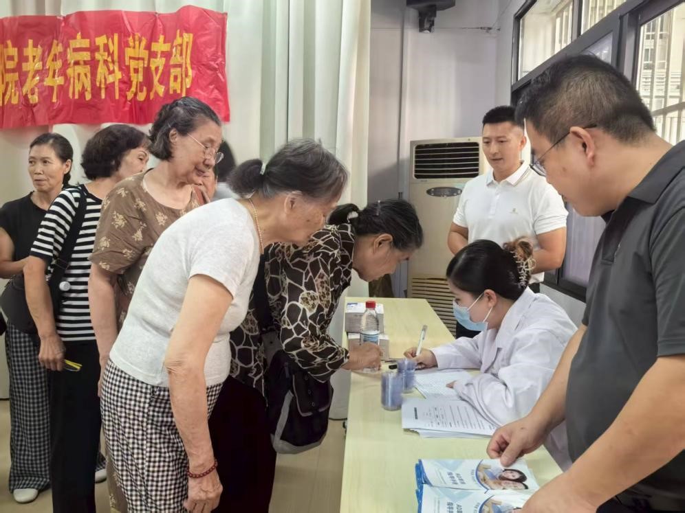 讲座结束后,新利客服人民医院老年病科及校医院文理学部家医团队提供了专业的认知障碍筛查与评估服务。现场老同志踊跃登记信息,领取尿液检测工具参与阿尔兹海默症的相关筛查,并体验数字认知评估系统。医护人员团队也积极为老同志们提供血压、血糖检测等基础健康检查和健康咨询服务。