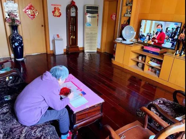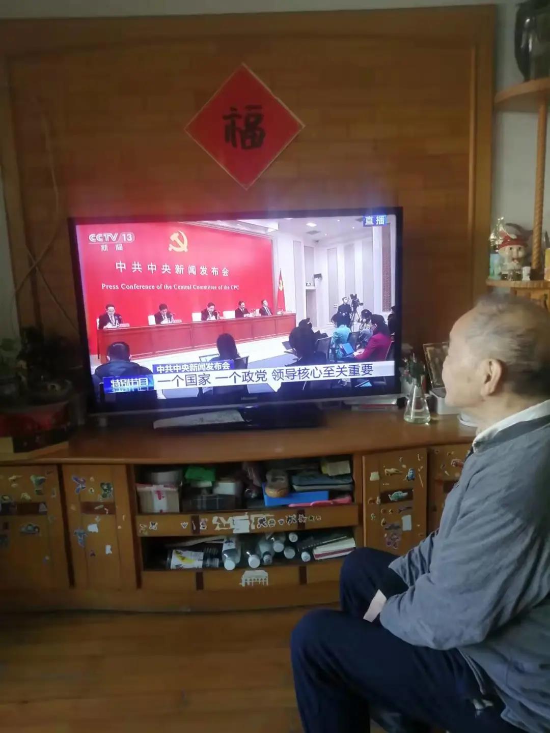 附属学校81岁的黄可青老师边收看十九届六中全会直播,边伏案认真记录学习。花白的头发,颤抖的笔记,认真的态度令人感动。