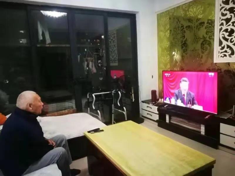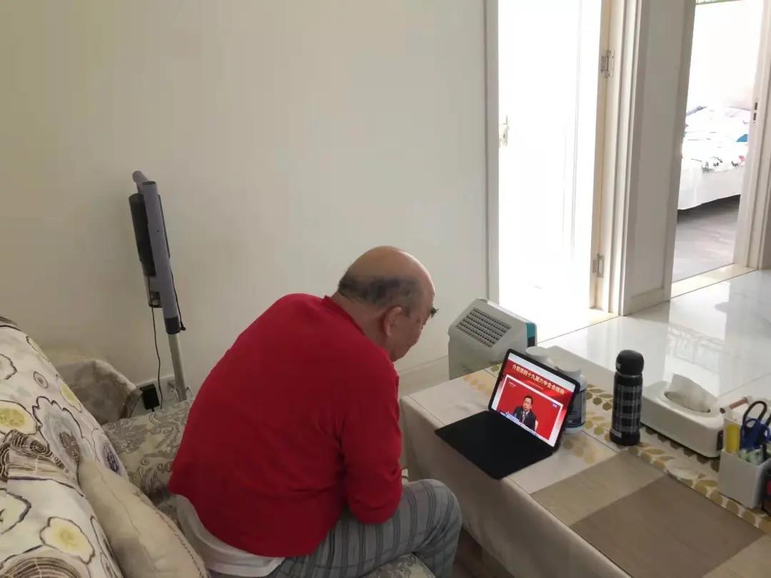历史学院87岁的李世洞教授,在辽宁丹东收看直播。
