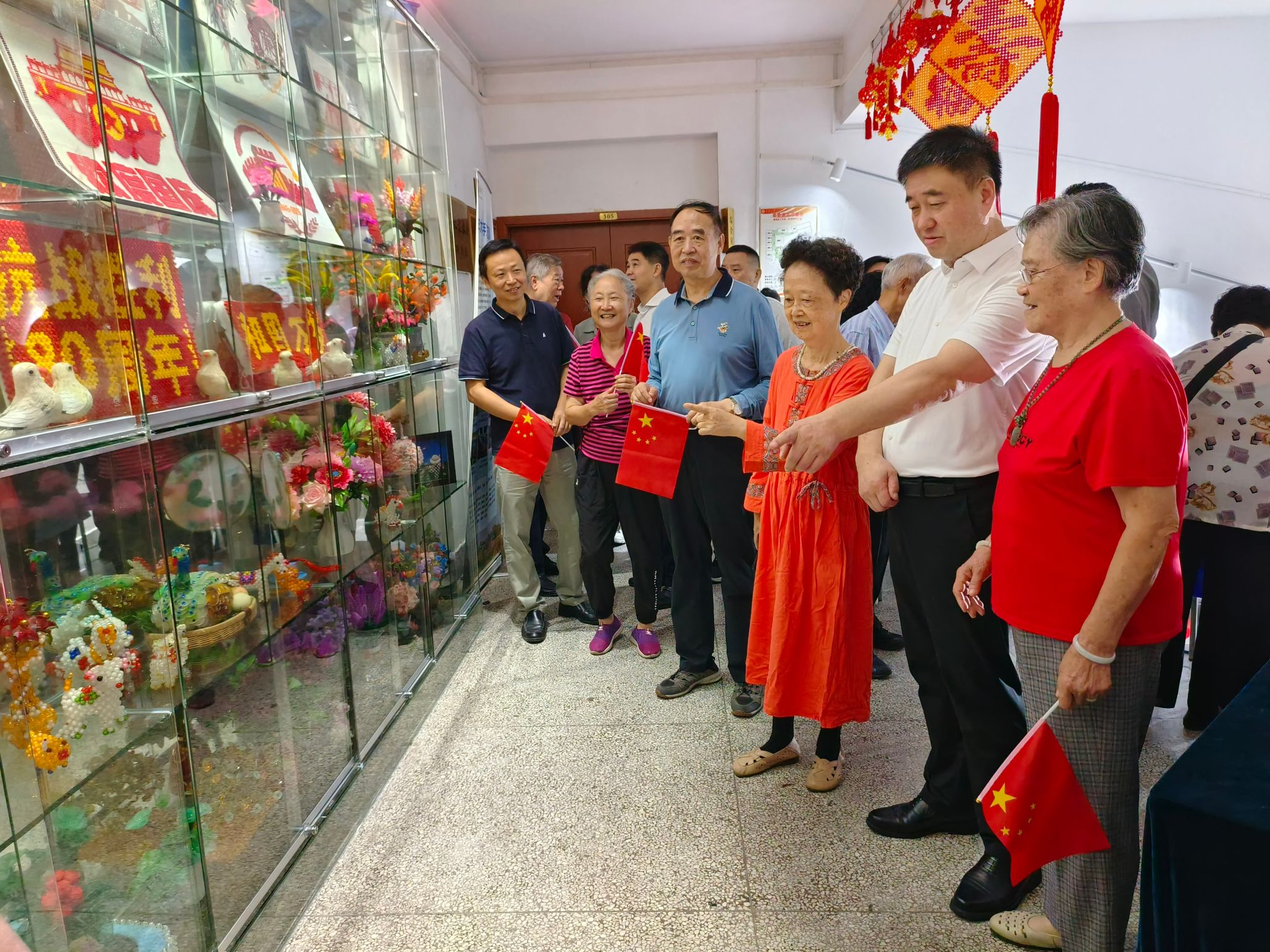 开幕式后,屈文谦与老同志们一同细致观摩,亲切交谈。
