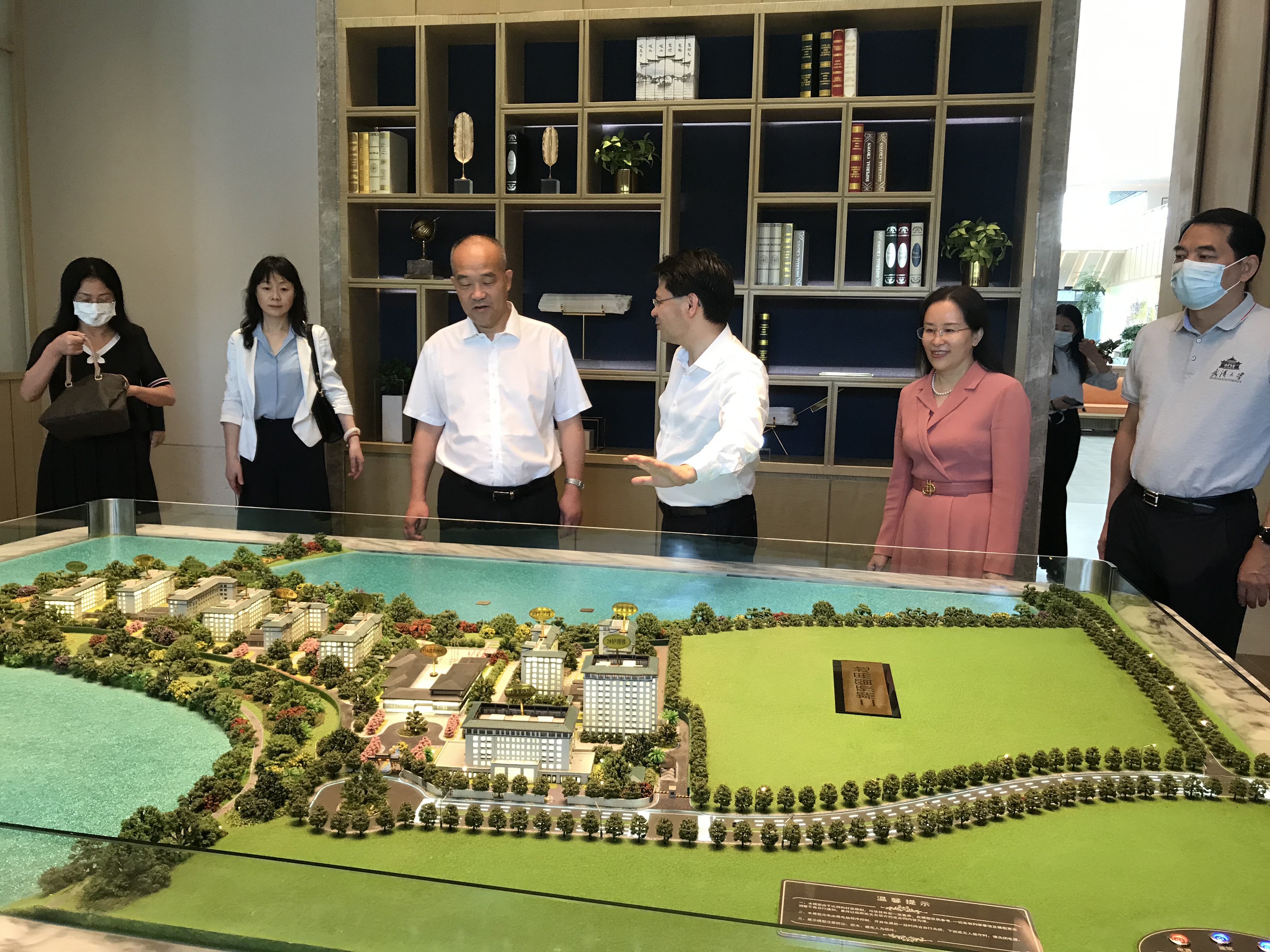 窦贤康校长一行,先后参观了楚园活力中心沙盘区、活动教室、及楚园康复医院等区域。参观期间,刘挺军就楚园社区总体规划、文化养老服务、适老化设施以及医养融合理念作了详细介绍。窦贤康对泰康养老社区高品质的硬件设施和配套服务给予了高度评价。