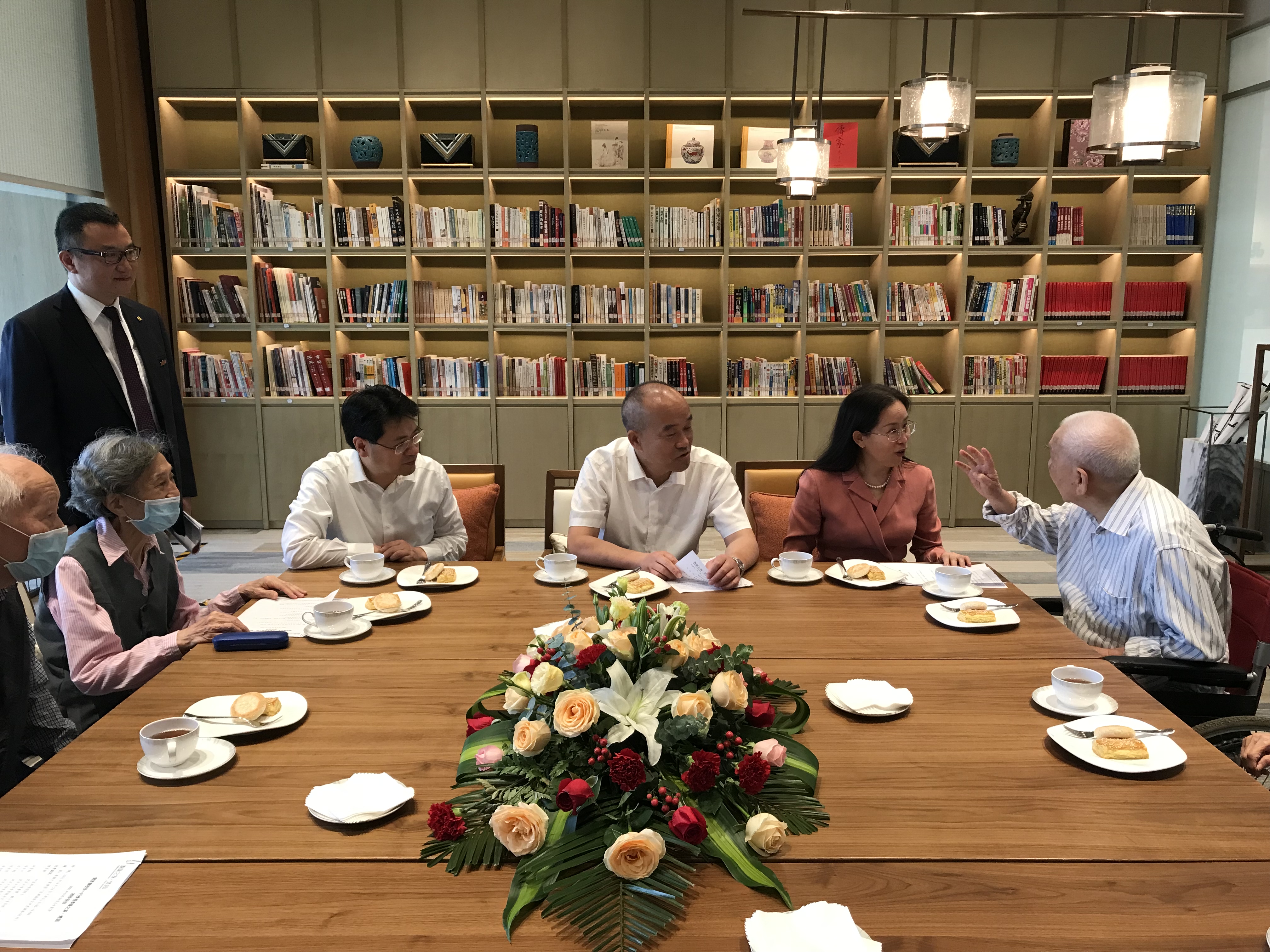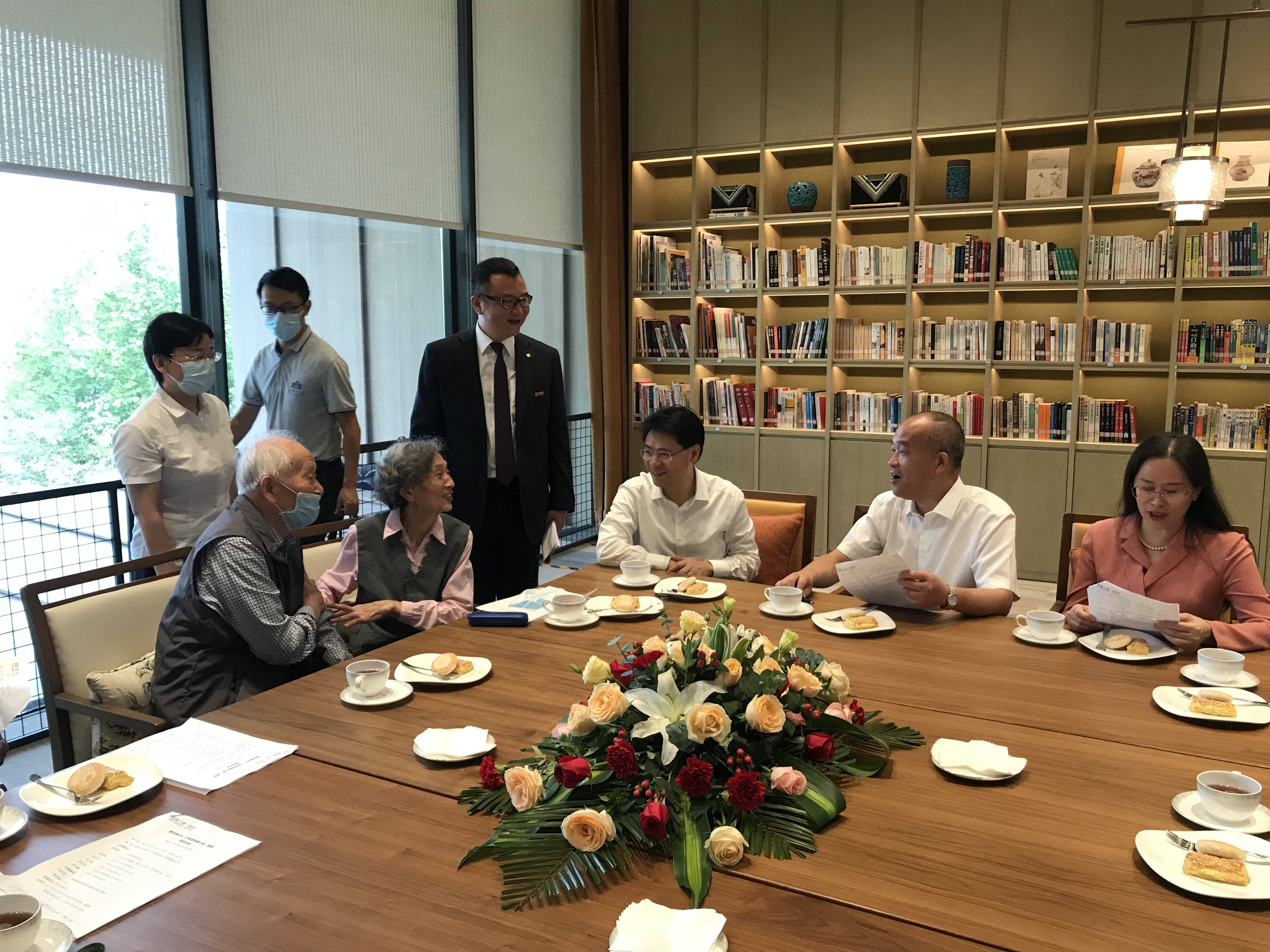 在楚园知音图书馆,窦贤康一行与张畹蕙、吴贻谷、余杭、仇潞培、于必禄、谢葆玲等武大离退休教授们亲切座谈,详细询问他们在楚园的生活和康养情况,教授们表示在楚园住得既舒适又安心,对楚园的居住环境和服务质量赞不绝口。窦校长代表学校对老教授们表示亲切慰问,衷心祝愿老教授们健康快乐,并要求学校新利18xl等部门继续为老教授们做好服务保障和关心关爱工作。对泰康·楚园为老教授们提供的精细服务,窦校长代表学校表示衷心感谢。随后,窦校长一行又专程到楚园护理区看望行动不便老教授。