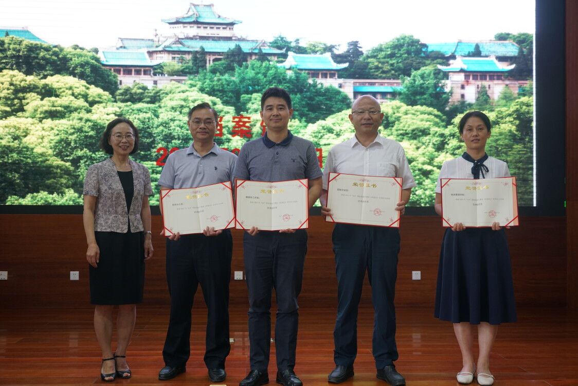 会议对“6.9”国际档案日暨新《档案法》宣传征文活动先进集体和个人进行了隆重表彰,学校档案工作委员会委员为征文活动优秀组织单位和获奖个人颁发了荣誉证书。我处提交的2篇论文全部获奖。胡珊撰写的《口述历史档案在高校四史教育中的应用与研究》获二等奖,叶骏撰写的《新形势下提升离退休干部档案管理能力的探究》获优秀奖。新利18xl被授予“优秀组织奖”单位,全校共4个单位获此奖项。