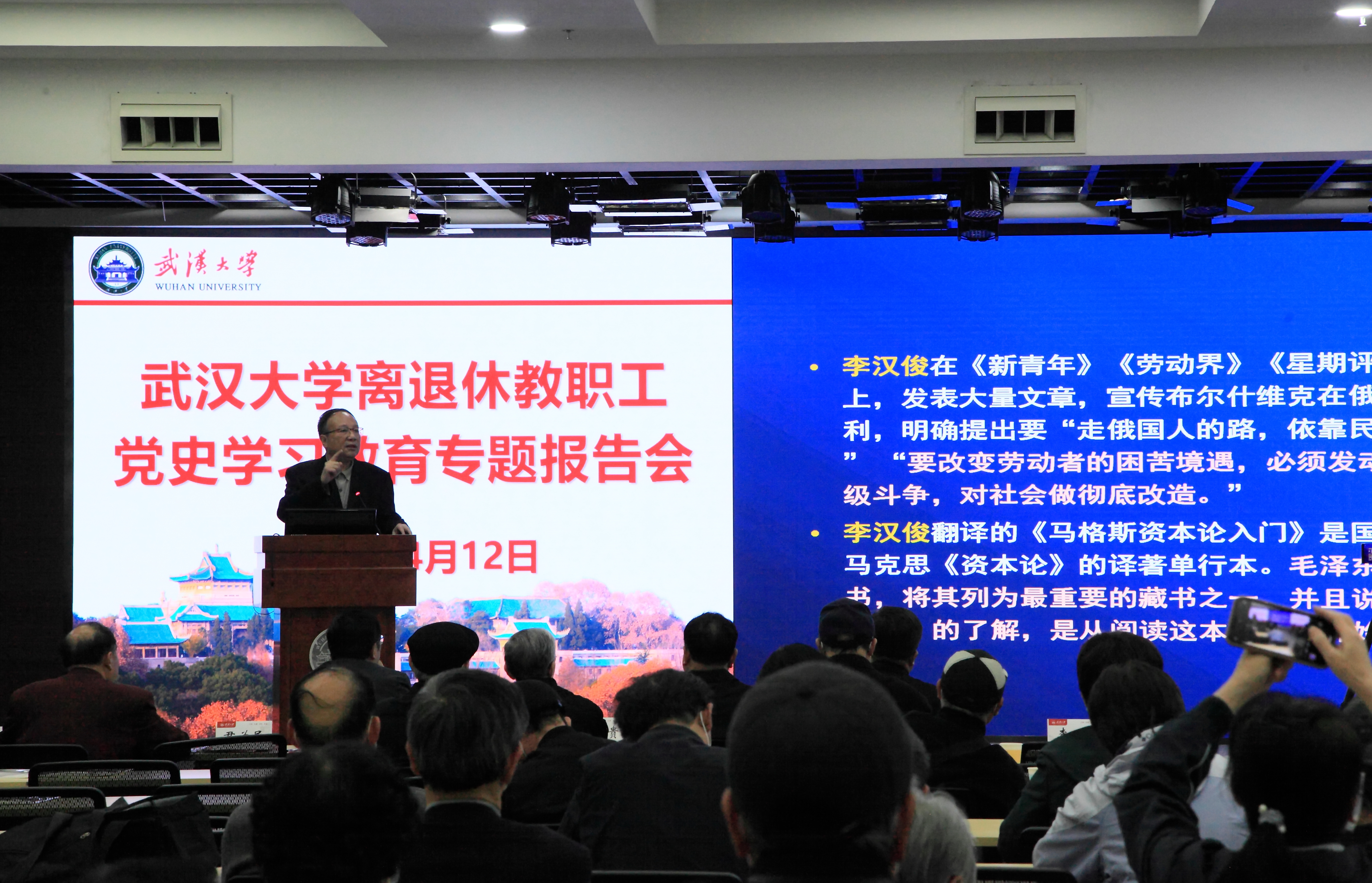 4月12日下午,新利客服离退休教职工党史学习教育专题报告会在图书馆报告厅举行,这是新利客服学习“四史”珞珈银龄宣讲团首次开讲。学习“四史”珞珈银龄宣讲团名誉团长、校党委原书记李健教授做专题报告。湖北省老科技工作者协会理事长、湖北省政协原副主席范兴元、校党委副书记赵雪梅出席报告会。全校离退休党支部书记、各涉老组织负责人近200人参会。报告会由新利18xl彭若男处长主持。