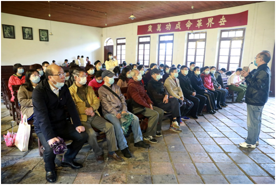 在农民运动讲习所大教室,我校老教授、下沉党员金春华为大家讲述了堂祖母张金保的革命故事,张金保是中共五大主席团成员,金教授围饶3个小故事向大家介绍了她的革命之路:为了国家舍弃自己的亲人、掩护革命领导被捕入狱、被叛徒出卖在监狱受尽折磨。从故事中大家充分感受到革命先烈张金保英勇无畏,用自己的一生去践行“国事大于家事”的伟大精神。