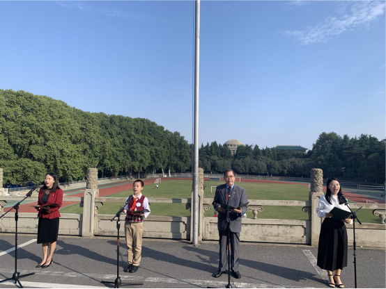 一代人有一代人的使命,一代人有一代人的担当。为献礼祖国生日,经济与管理学院退休老教授肖兵,信息管理学院青年教授吴丹,计算机学院博士生乔雨,医务人员子女代表、“梦想小屋”学员代表丁擎松共同献上主题朗诵《奋进强国路上》,讲述自己与祖国共同奋进的故事,号召全校师生牢记使命与责任,传承强国志、奋进新时代.
