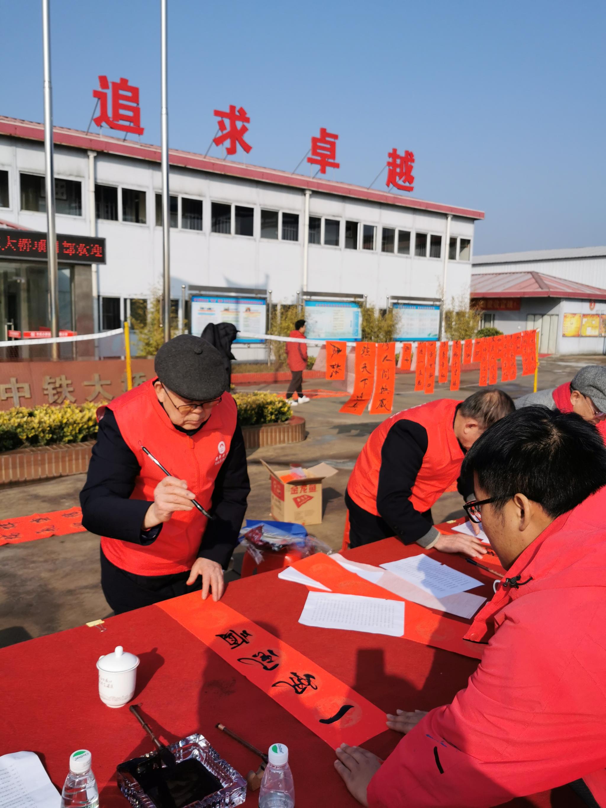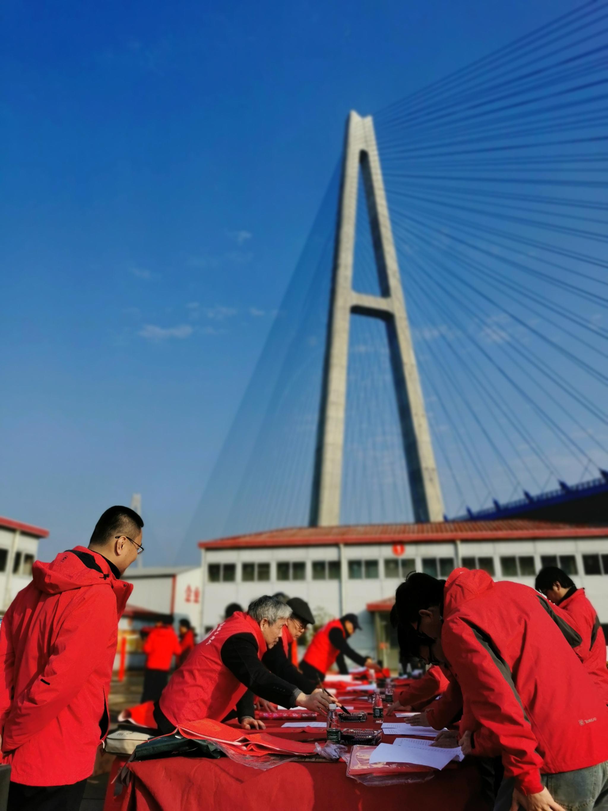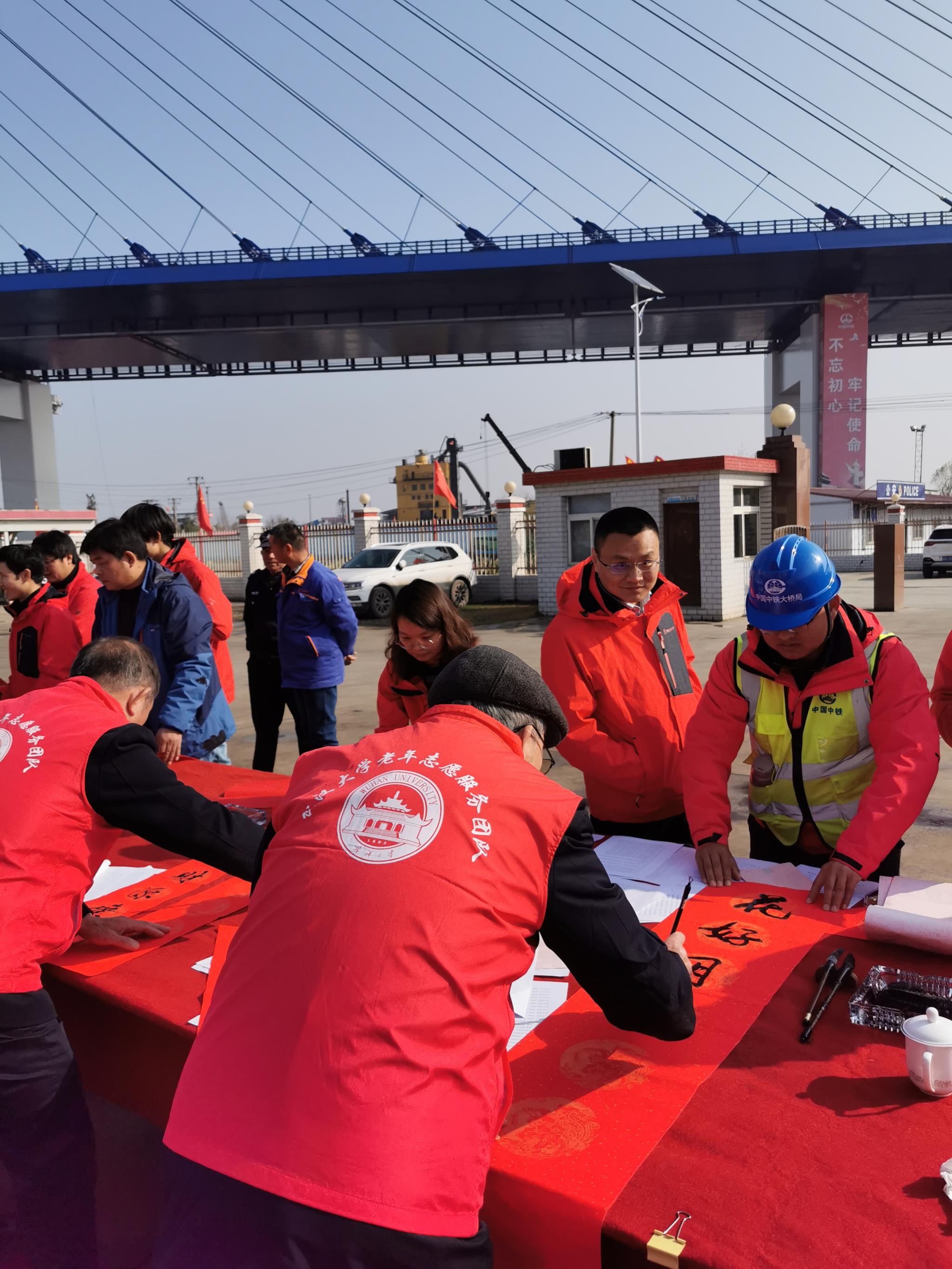 桥局的建桥工人书写春联,共迎新年,送去新春的祝福,送上温馨的关爱。