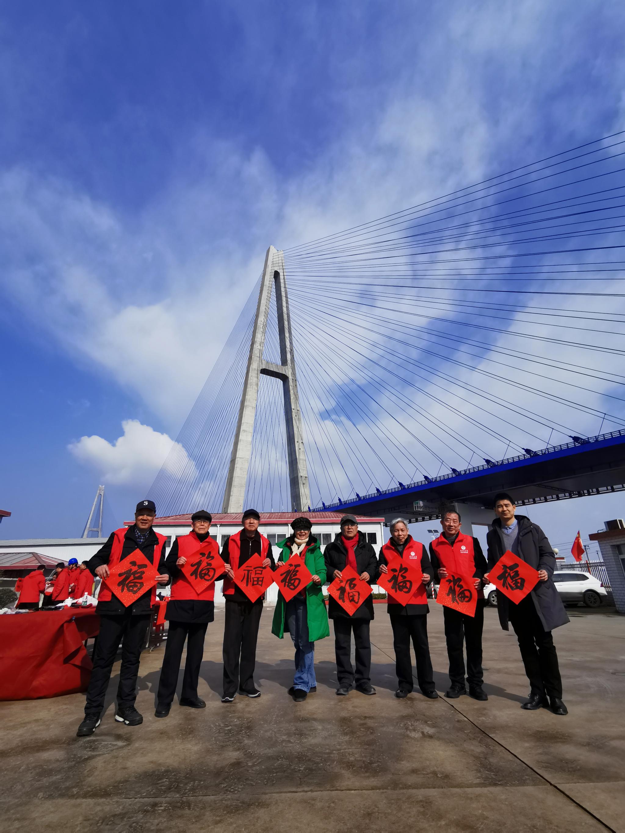 近日,新利客服老年志愿者协会文化分会的书画家们来到武汉青山长江大桥项目部,为中铁大