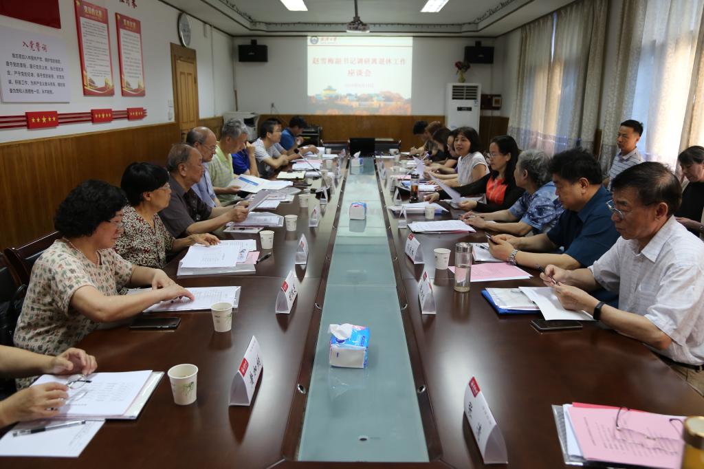 6月14日,校党委副书记赵雪梅来到新利18xl,与部分学院分管离退休工作的领导、离退休教职工党支部书记、基层老协、基层关工委等基层涉老组织负责人代表座谈,深入调研离退休工作,认真听取基层的意见和建议,了解基层离退休工作存在的困难和问题,并就进一步加强和改进离退休工作提出了明确要求。新利18xl处长彭若男主持座谈会。