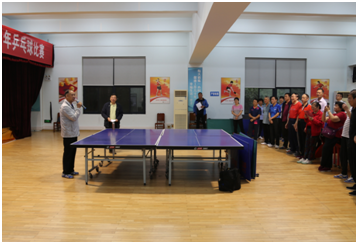 随后裁判长刘江丽和运动员汪大海分别代表裁判员和运动员宣誓。校老年协会常务副会长张诗荣宣布乒乓球比赛正式开赛。