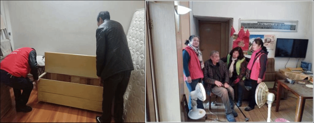 队员们特意购买了含苞待放的栀子花送给喜欢养花的赵施光老师,赵老师笑着合掌说道:“太好了,太好了,谢谢大家”。来到侯玉玲老师家,侯老师说:“正好我家家具想搬动一下”,队员们和青年志愿者一道帮助搬抬家具,整理家里卫生一个多小时。