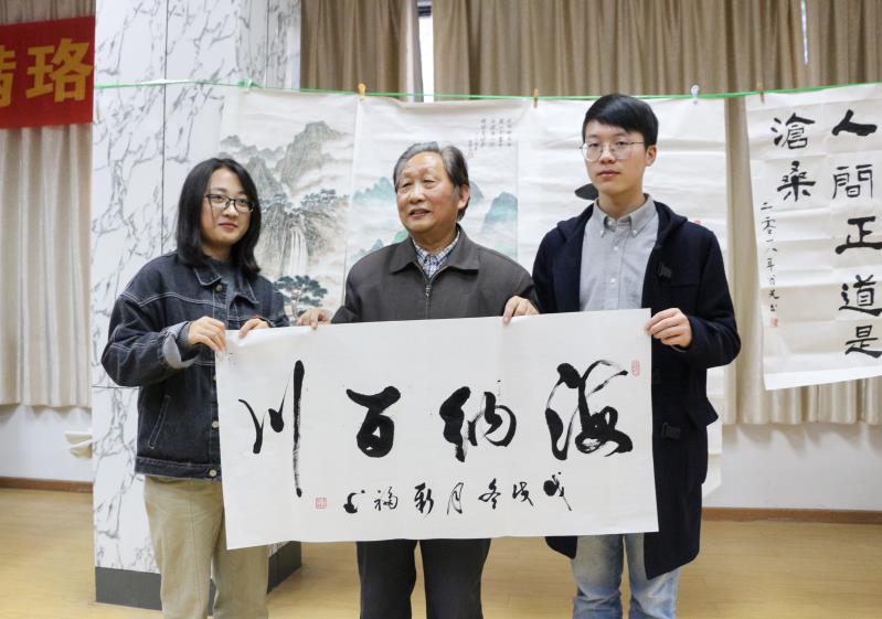 淡淡文意,缕缕墨香。活动第二项“翰墨情缘—书画品鉴”邀请到了“翰墨情书画社”的老年艺术家们,他们不仅带来了自己优秀的作品,还为我们进行现场书画创作,书法力透纸背,笔势龙蛇飞动,绘画作品也十分传神,一幅幅优秀作品呈现在大家面前,令人大饱眼福,最后老师还创作了“天道酬勤”四个字送给在场志愿者们,以勉励大家努力进取,大家在老艺术家们的带领下体会到了翰墨中的美丽世界。
