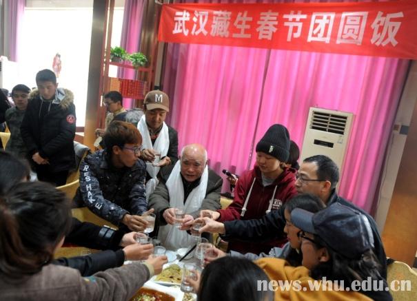 这些藏族学生来自新利客服、华中科技大学、华中师范大学、华中农业大学等高校。寒假里,由于路途遥远,或为了勤工助学,他们选择留在学校。跟往年一样,杨昌林老人自掏腰包请学生们来吃团年饭,“武汉也是你们的家,这里也有关心你们的阿爸。”