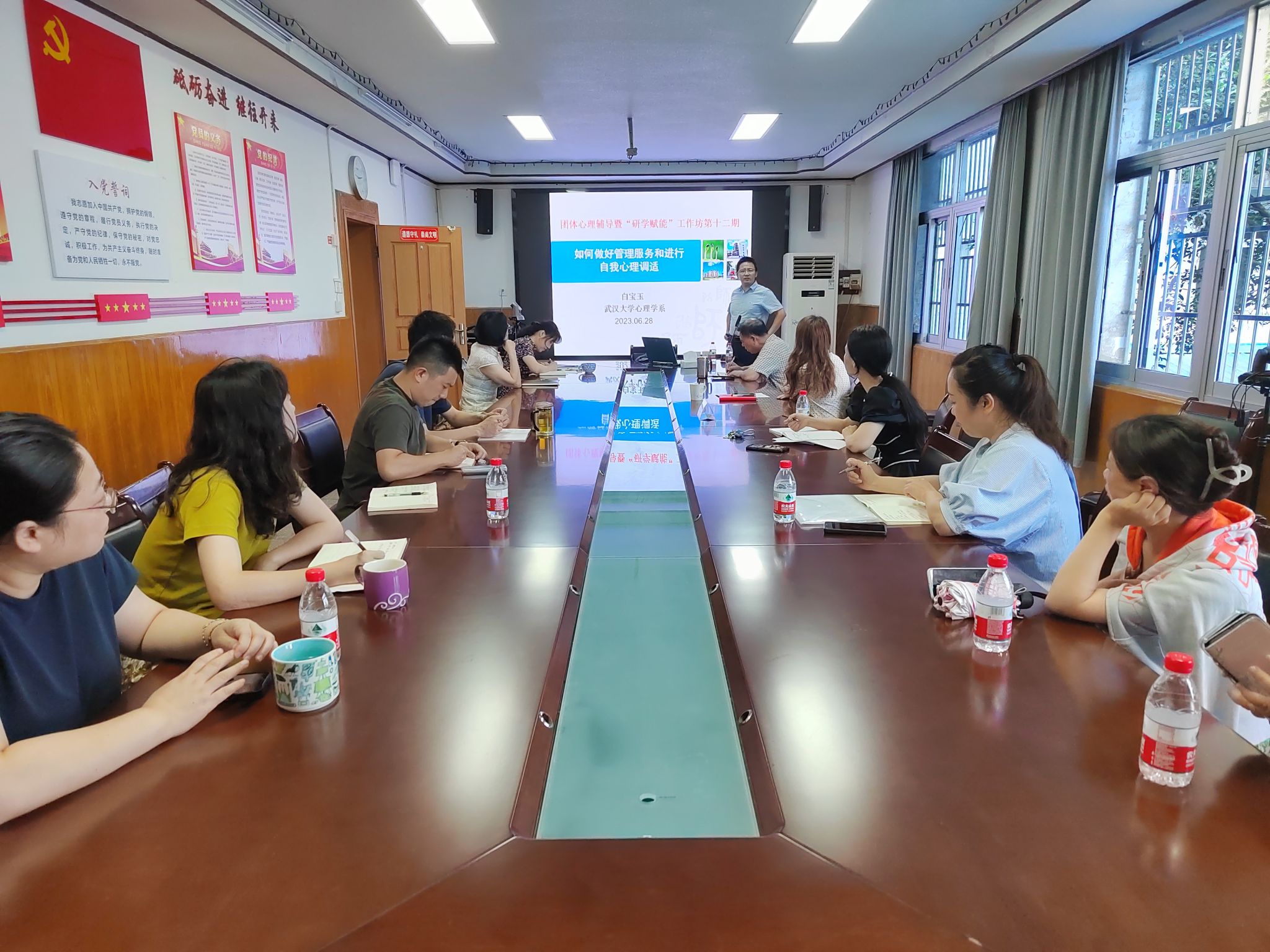 2023年6月28日下午,新利18xl在处一会议室举办团体心理辅导活动,邀请到了我校哲学学院心理学系白宝玉副教授、国家二级心理咨询师为大家分享“如何做好管理服务和进行自我调试”的专题讲座,本次活动由分管工会工作的吴仪副处长主持,新利18xl全体职工参加。此活动也是“研学赋能”工作坊系列活动的第十二期。