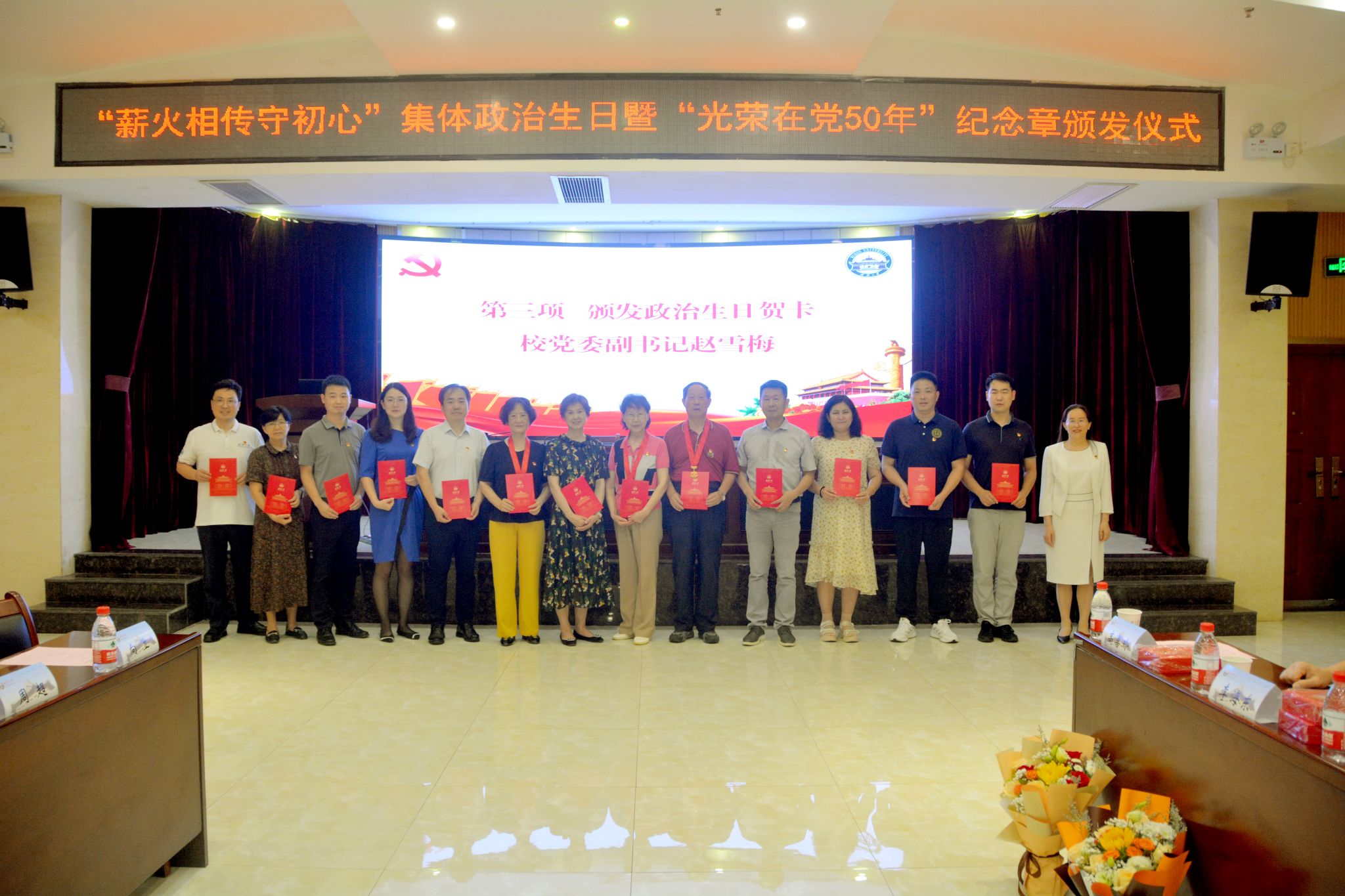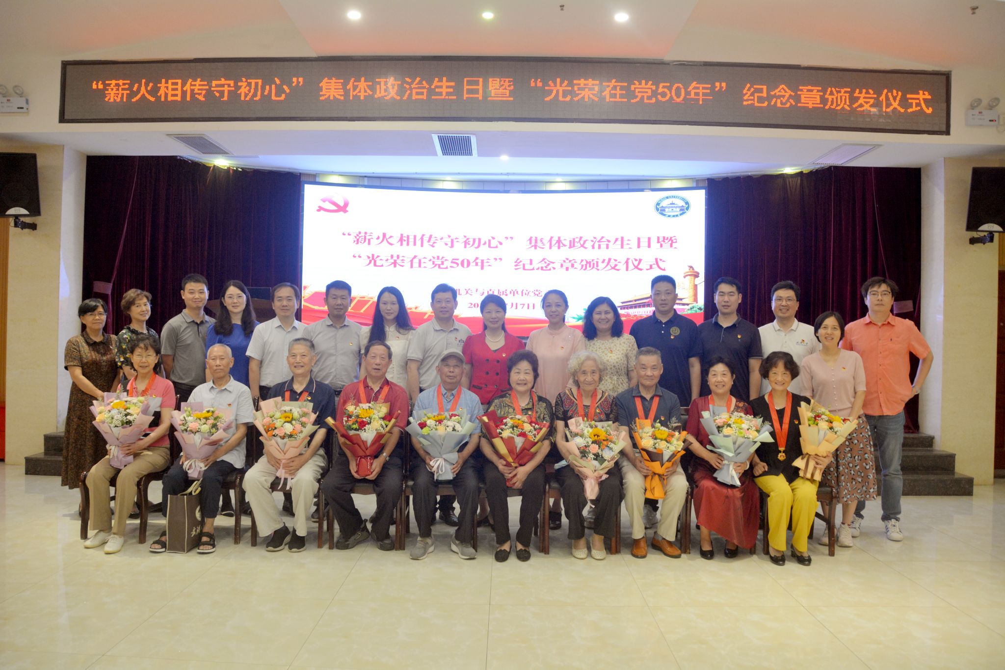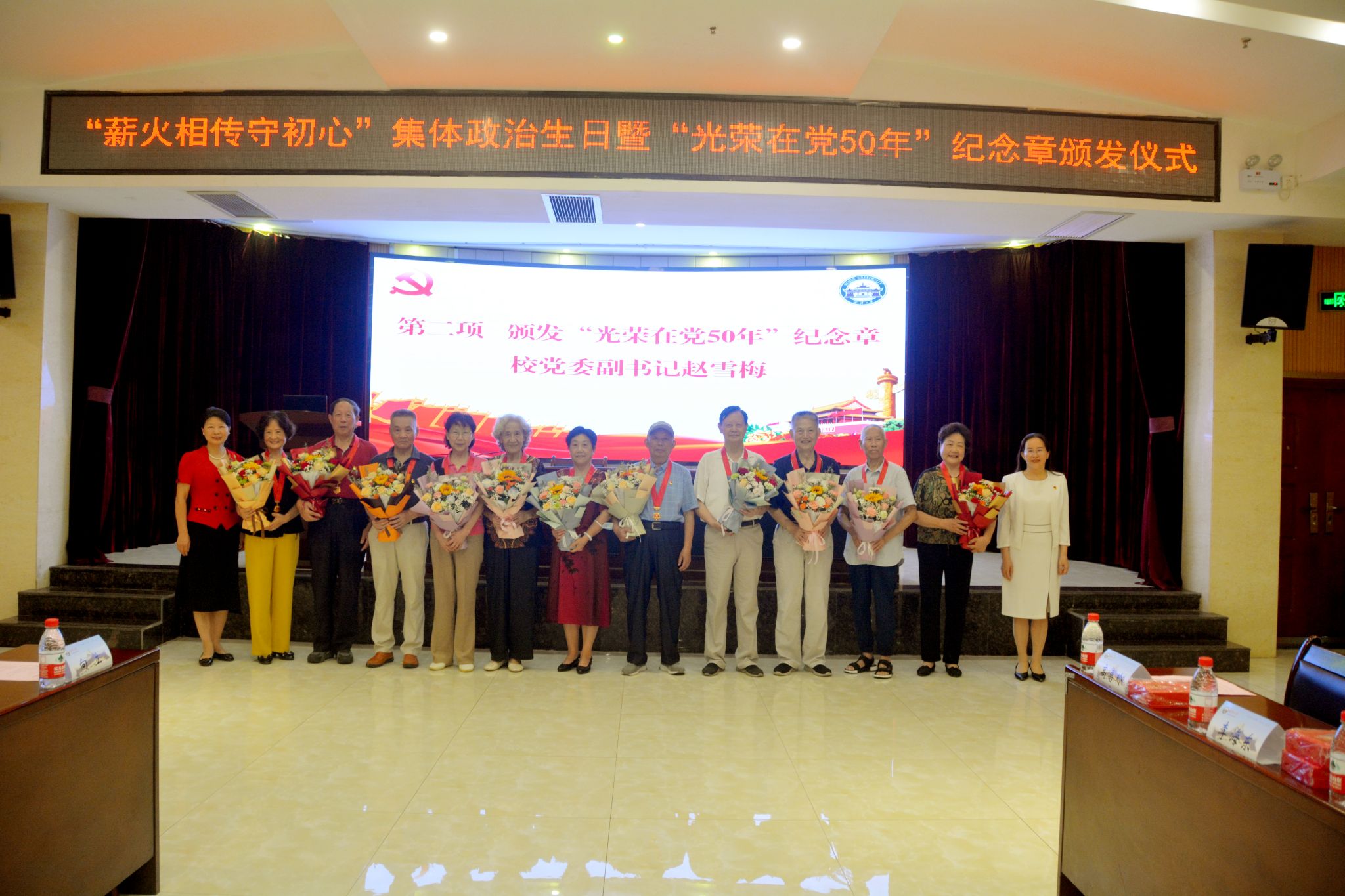 (通讯员伍健婷)7月7日,机关与直属单位党委举办“薪火相传守初心”集体政治生日暨“光荣在党50年”纪念章颁发仪式。校党委副书记赵雪梅,机关与直属单位党委、组织部、离退休处等单位负责人和代表,获得“光荣在党50年”纪念章的老党员代表,“政治生日”党员代表及机关与直属单位党委各党总支(党支部)组织委员参加活动。活动由机关与直属单位党委书记谭玉敏主持。