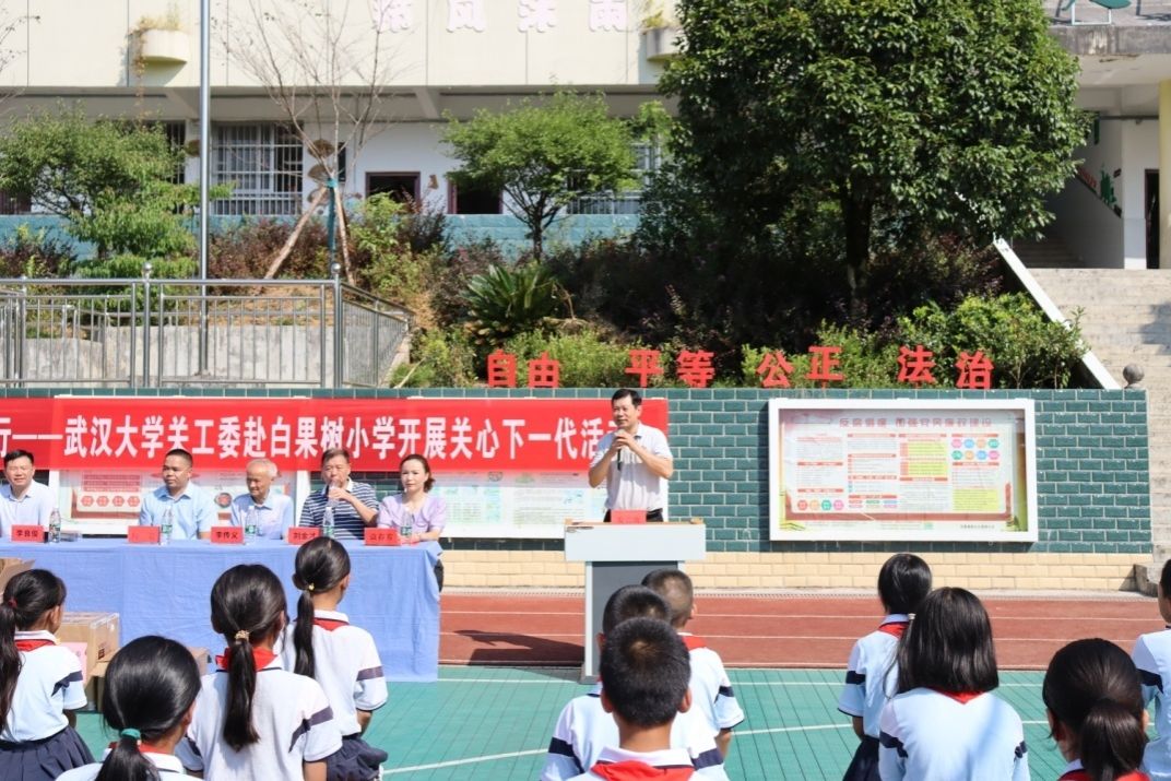 在白果树小学,支部一行人同新利客服关心下一代工作委员会“五老”代表共同看望慰问了白果树小学全体师生,并为学校捐赠了价值1万元的学习用品和体育器材。在捐赠仪式上新利18xl党支部书记李良俊同志以“感谢、希望、祝愿”为关键词谈了三点切身体会:一是感谢新利客服在这里支教的两位老师,他们在这里积极的工作,辛勤的劳动,为白果树小学的振兴发展贡献他们的力量,同时也感谢恩施市教育系统各级领导对支教老师的关心关照,让他们安心愉快工作;二是希望同学们要树立远大的志向,远大的理想,好好学习,天天向上,让自己早日成为合格的中国式现代化建设者和接班人;三是祝愿在新利客服进一步的支援和共建下,白果树小学未来发展更美好。