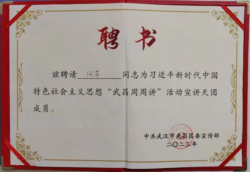 9月15日下午,“武昌周周讲”路演大赛现场传来好消息,新利客服哲学学院退休教授、珞珈银龄宣讲团成员何萍成功入选“武昌周周讲”宣讲天团第二批成员,成为新利客服唯一入选的退休教授。