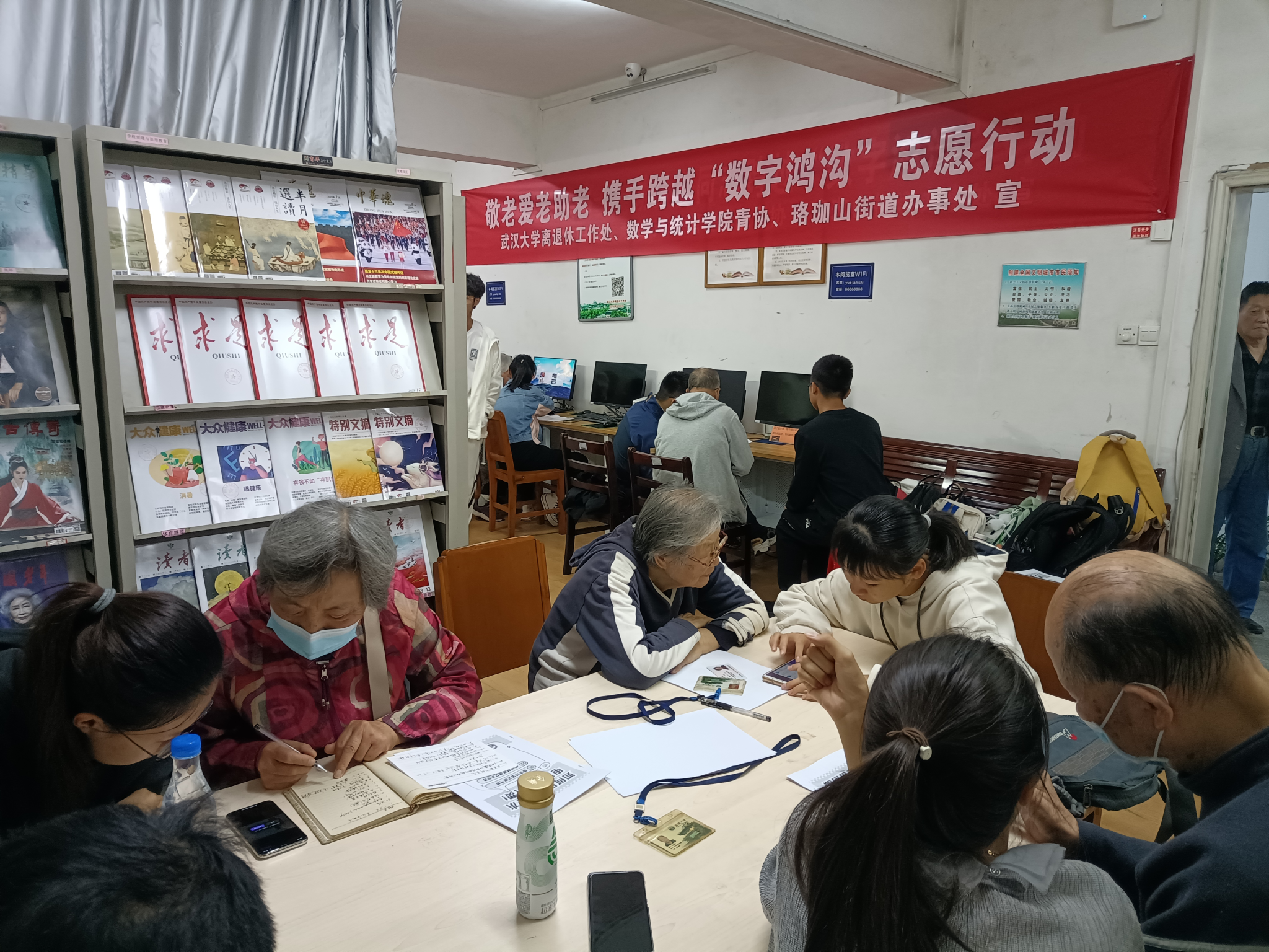 金秋十月,月桂飘香。2023年10月12日,新利18xl联合数学与统计学院的学生志愿者,开展了携手跨越“数学鸿沟”志愿行动。志愿者们走进新利客服文理学部离退休教职工活动中心的阅览室,教老同志如何使用手机、电脑等电子产品进行生活缴费,快速融入信息时代。