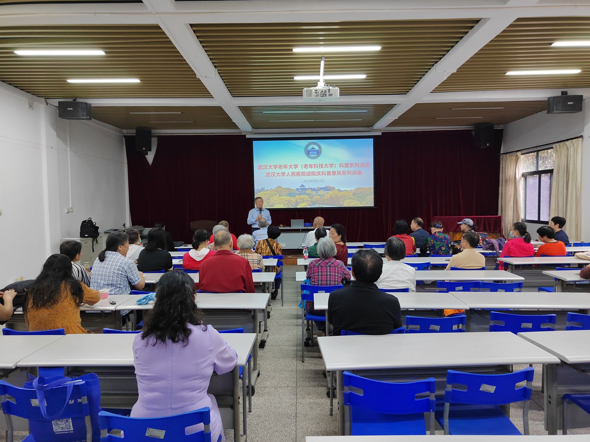 医疗科普,守护健康。老年人是心血管疾病高发人群,为科学普及心血管疾病相关知识,提高我校老同志的健康水平和生活质量,敬老月期间,特别邀请了新利客服人民医院冠心病三科主任王朗为学校离退休老同志作“心血管健康科普问与答”的讲座。讲座中,王朗主任用通俗易懂的语言,科普了心血管疾病的发生、预防及治疗等科学知识,剖析了疾病发生的多种原因及肥胖、糖尿病、高血压与心脑血管疾病的相互关系,总结了在日常工作和生活中预防心脑血管疾病的方法,内容丰富、实用性强,深受老同志们的欢迎。