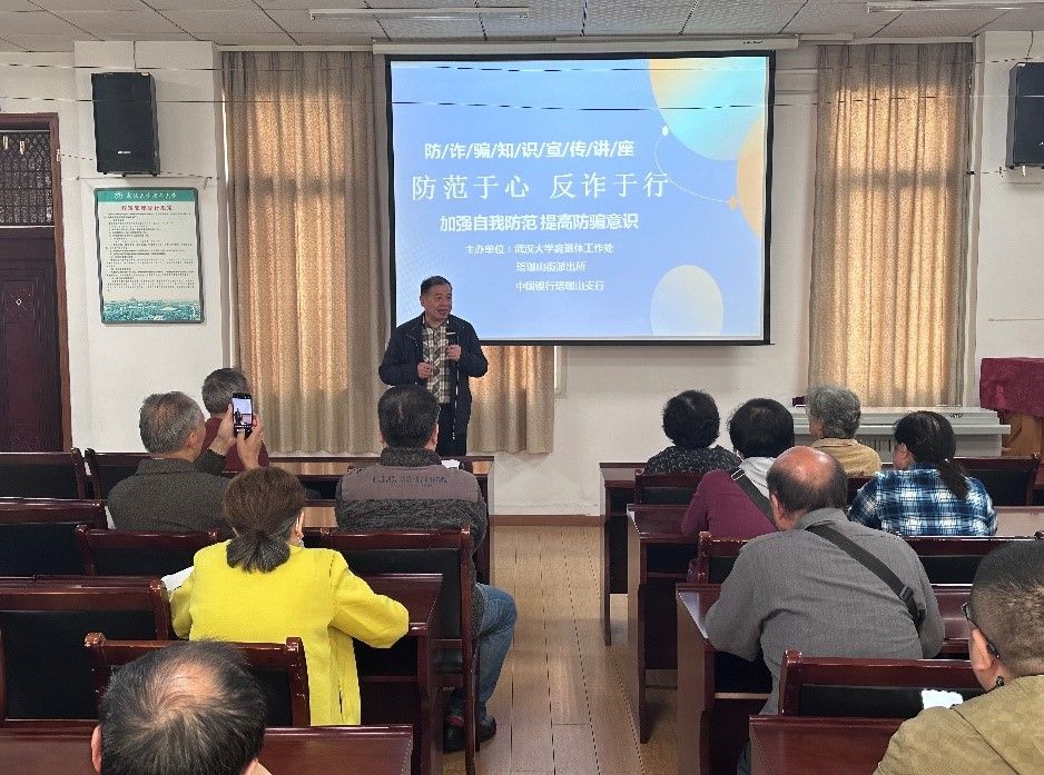 11月8日,新利18xl联合珞珈山派出所和中国银行珞珈山支行为工学部离退休老同志开展防诈骗宣讲活动。