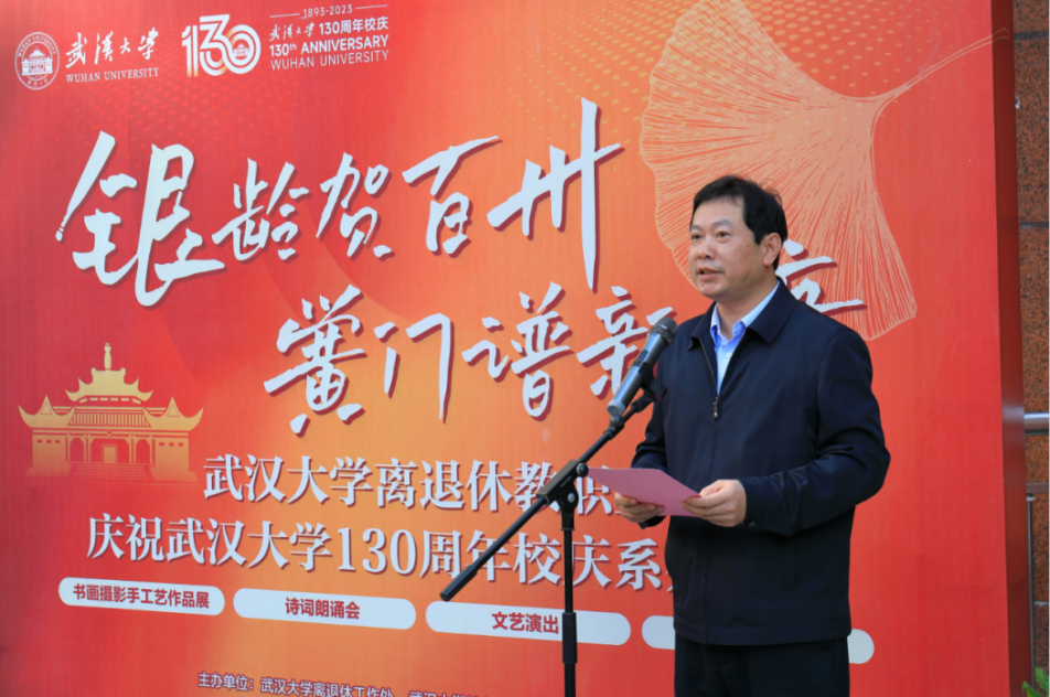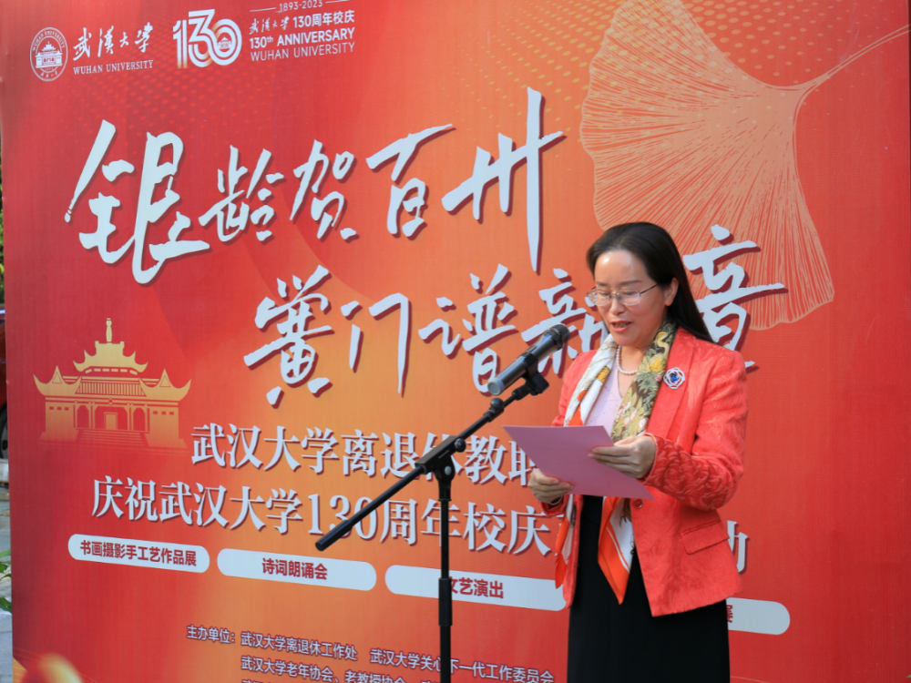 赵雪梅宣布离退休教职工喜迎新利客服130周年校庆书画、摄影、手工艺作品展正式开幕。