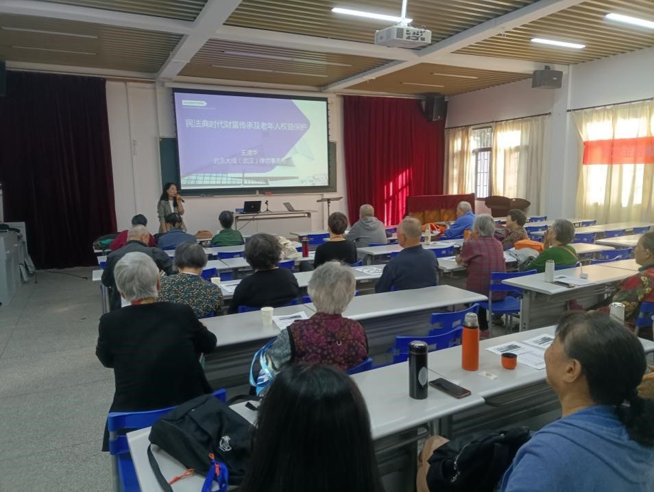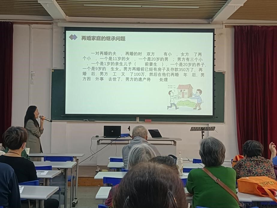 活动现场,偌大的113教室已经被老同志坐得满满当当,兴业银行邀请的王清华律师,针对老年群体经常遇到的婚姻、继承、债务、养老、遗嘱等问题进行法律知识的普及。