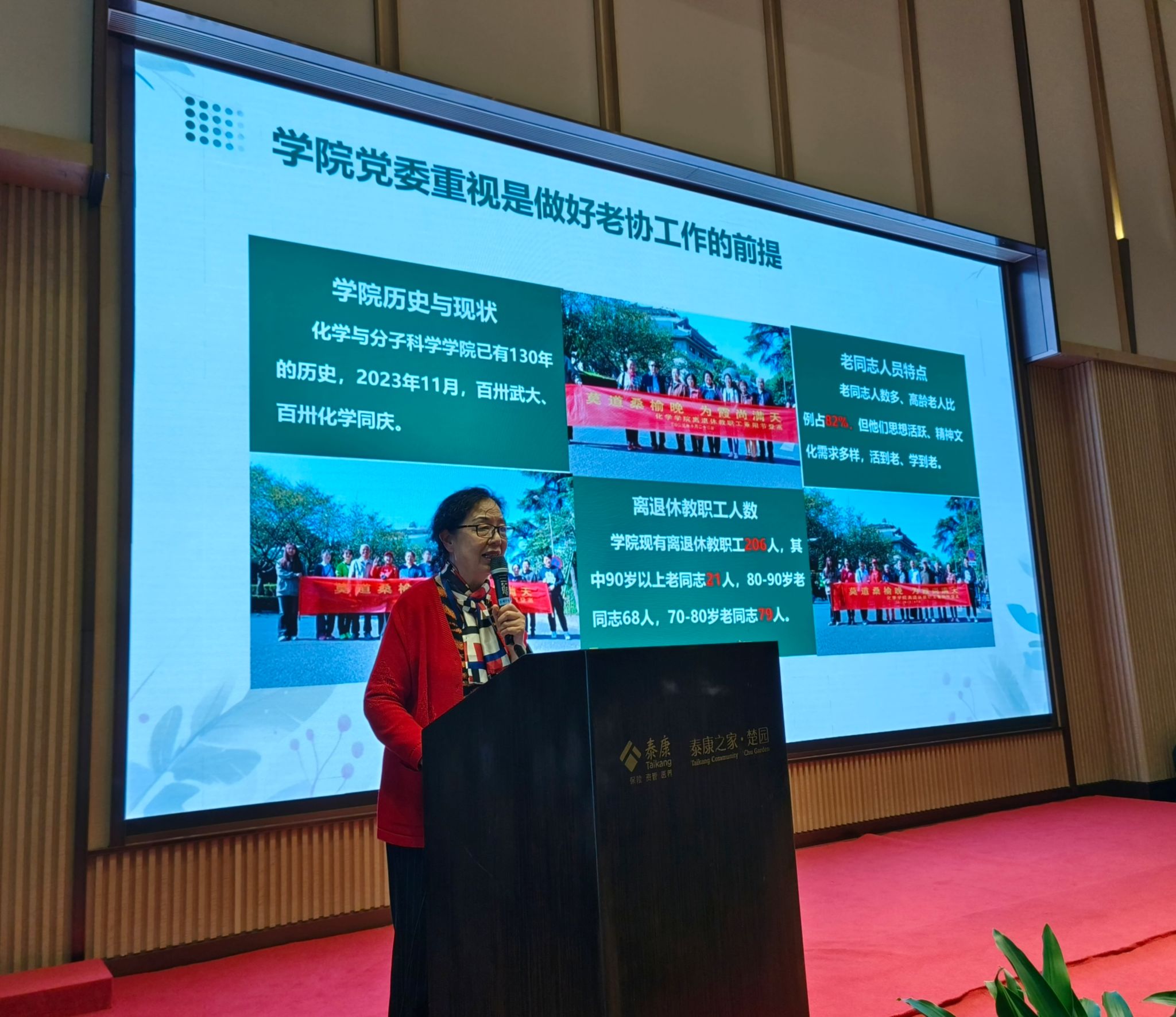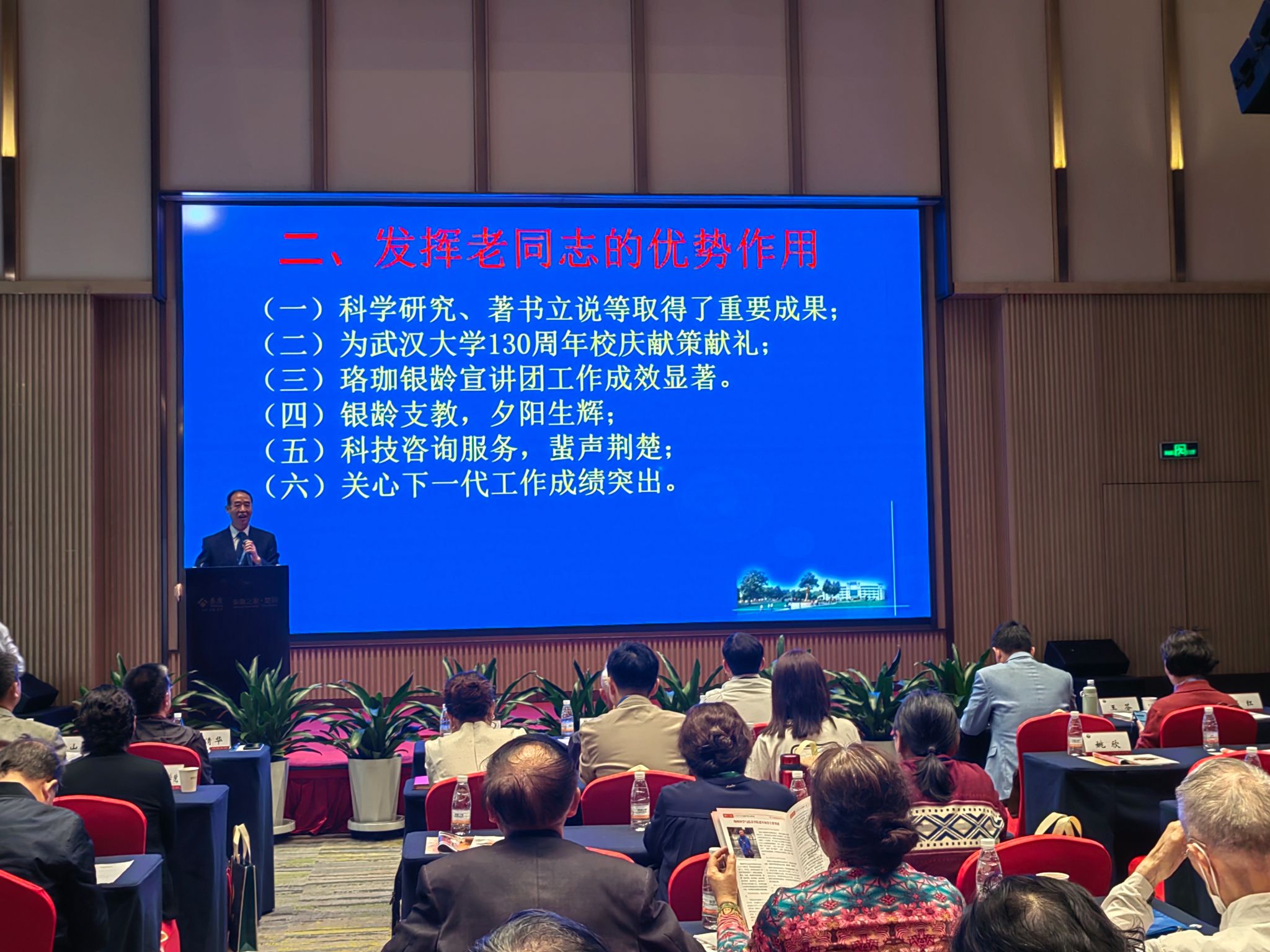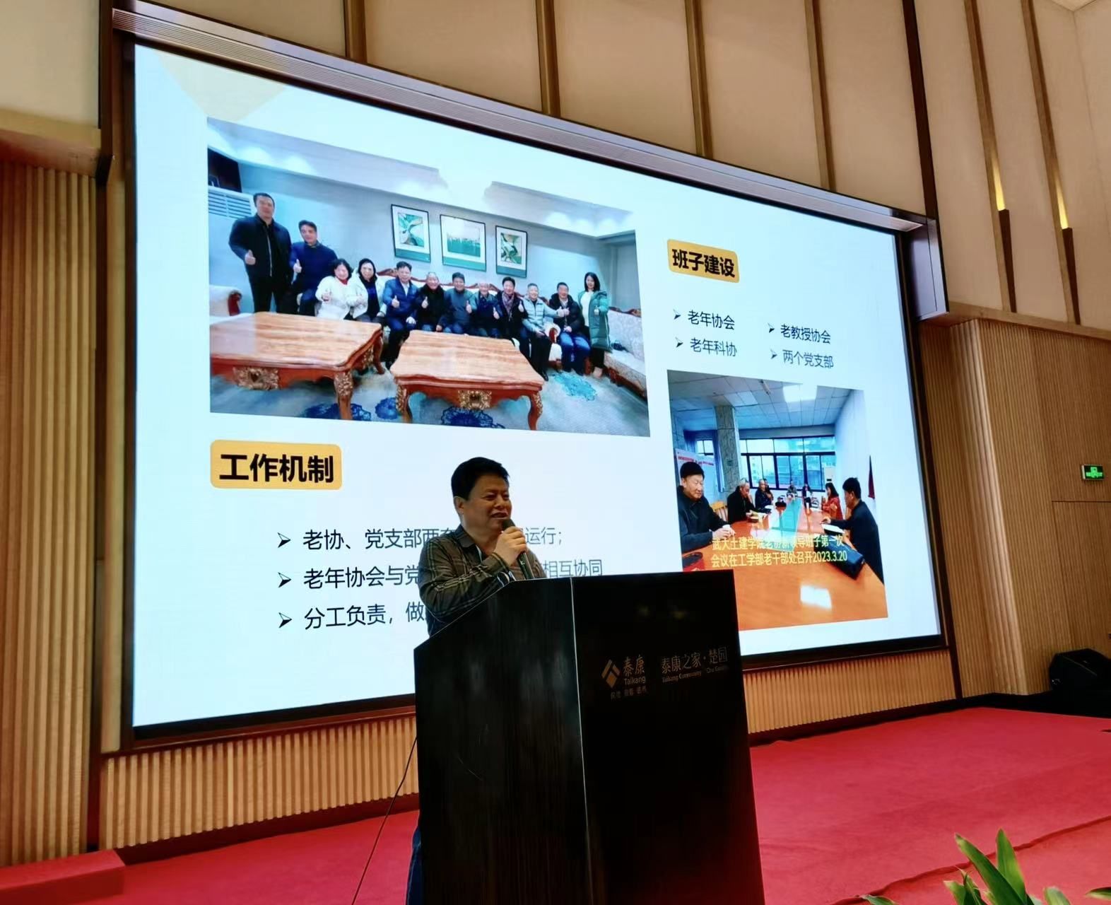 化学与分子科学学院老年协会会长周曼莉、土木建筑工程学院老年协会会长杜新喜代表先进基层老年协会作经验交流。