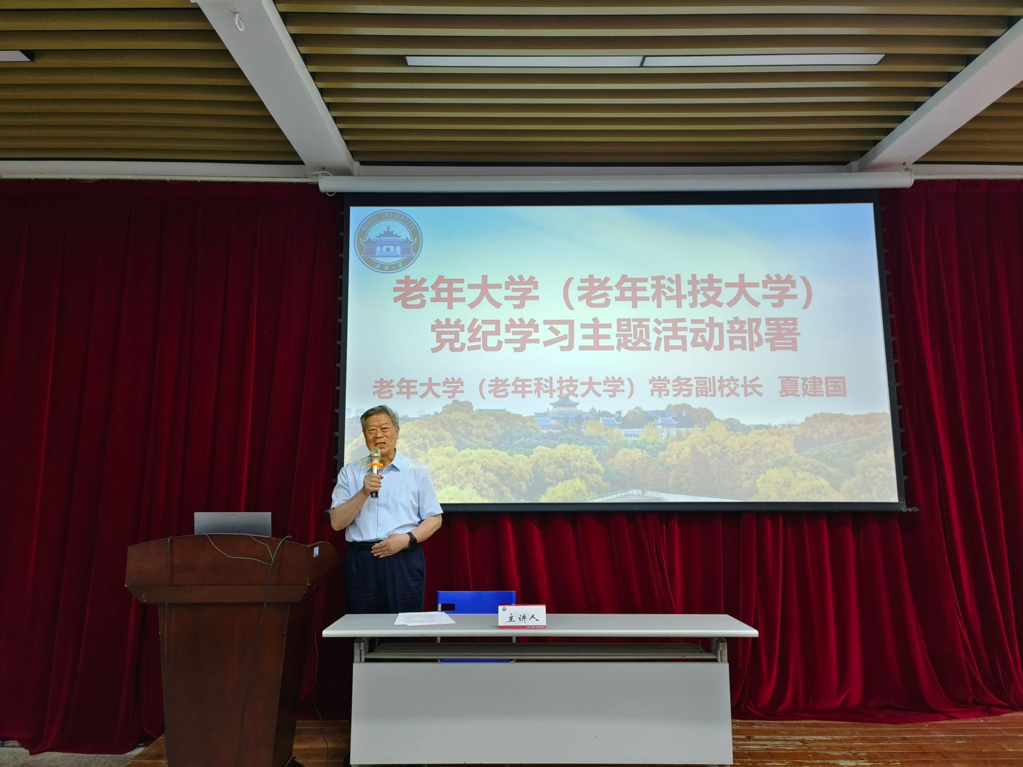 随后,老年大学(老年科技大学)常务副校长夏建国对各临时党支部开展党纪学习教育进行工作安排,并领学《中国共产党纪律处分条例》总则部分。老年大学(老年科技大学)副校长廖皓磊对2024学年兼职教学督导招募工作进行动员部署。