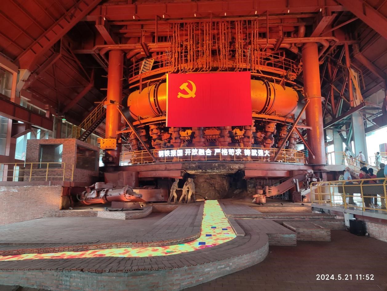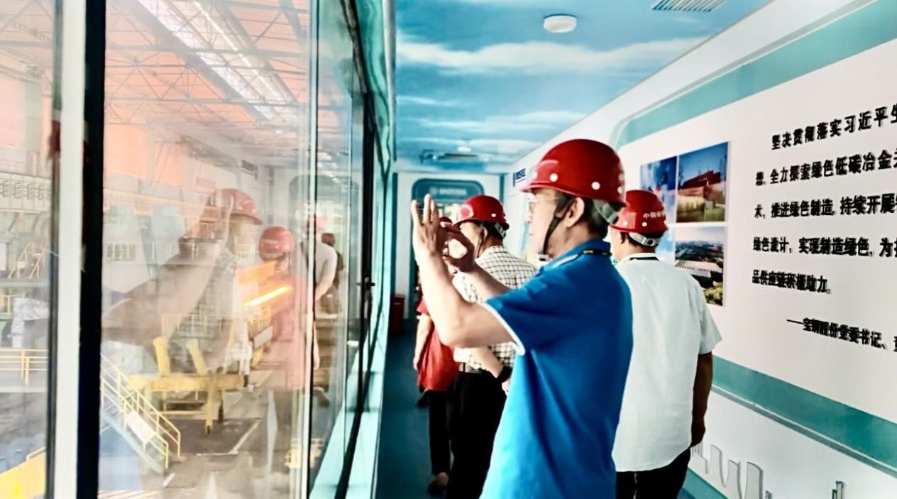 随后,老同志们来到了三热轧车间,参观了现代化的生产设备和工艺流程。看着滚烫的钢材在流水线上生产和传送,大家兴奋不已,纷纷拍照留影。在炼钢操控中心,大家看到先进的多屏中央监控显示屏和整齐干净的操作台。操作人员在操控台轻点鼠标就能完成多条生产线的集中操控并高效的完成现场高难度的生产任务。老同志对武钢的科技创新和发展成就表示由衷的赞叹。在一号高炉国家工业遗址公园,大家一同参观了一号高炉博物馆,聆听老一辈建设者自立自强、艰苦奋斗的创业故事,回顾十万大军建武钢的壮阔场面,重温毛主席登上炉台见证新中国第一炉铁水喷涌而出激动人心的历史时刻。