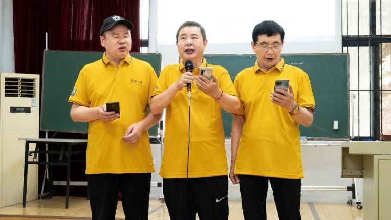 国学班一直与视频班、太极班、形体班友好互动、协同共进。这次的公开课也同样得到了这几个友班的支持和帮助。何玉老师亲自率视频班的学员助力公开课的拍照、视频录制,太极班班长蔡红和形体班班长焦力群率学员与国学班一同参加了公开课的艺术展示活动。国学班师生集体朗诵了武大校训出处的名句和气势宏大的《沁园春.雪》,国学班男生三人组的合唱《送别》、形体班的走秀“玉人坊”、太极班集体的太极循环8式和涂老师的42式太极剑竞赛套路、可谓精彩纷呈,赢得热烈的掌声。