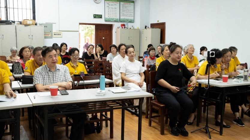 6 月 26 日上午,新利客服老年大学(老年科技大学)的国学经典赏析与诵读班(以下简称国学班)在校工会 214 教室上了一堂别具特色的公开汇报课。课程内容包括两个部分,第一部分是国学班春季课程内容总结、课程成果展示;第二部分是才艺展示、交流互动。参加公开课的人员有国学班学员、联合教学班级学员、老年大学其它班学员,以及有兴趣学习国学课程的离退休教职工、家属等,老年大学校务委员刘金才到场给予了指导。