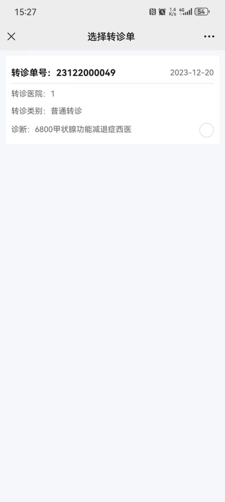 选择【本市就医】,跳转到转诊单列表,选择转诊单