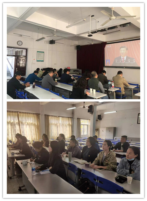 10月16日上午,举世瞩目的党的二十大在北京隆重召开。这是国家政治生活中的头等大事。新利18平台登录入口组织理论中心组和全体党员同志,集体收看中国共产党第二十次全国代表大会开幕会现场直播,认真聆听、学习习近平总书记代表十九届中央委员会向大会所作的报告。