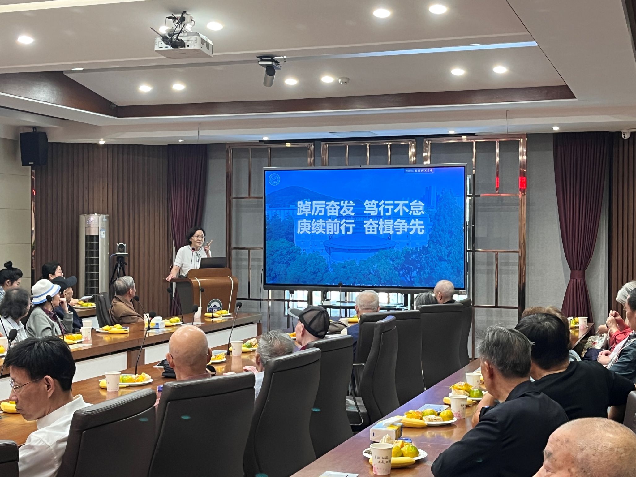 首先,程书记从坚持党建引领、坚持人才强国、坚持聚焦学科、坚持深化改革、坚持立德树人初心、坚持全面发展出发等6个方面,详细介绍了学院近两年的发展情况,指出了学院近两年在教学科研、学科建设和人才培养等多个领域取得的突出成绩,强调学院的发展离不开每一位离退休教职工的辛勤付出,并对离退休教职工们为学院发展做出的卓越贡献表示衷心的感谢和敬意。