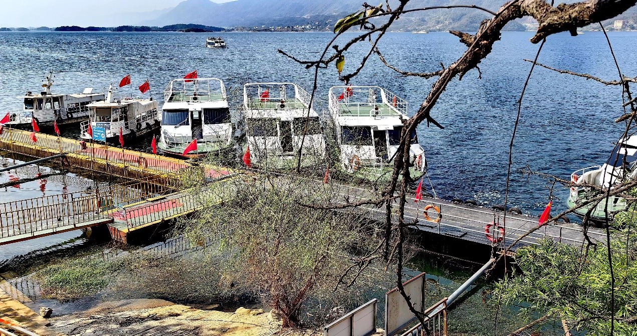 抵达仙岛湖,大家乘船行于水上,感受仙岛湖的湖光山色。仙岛湖享有"荆楚第一奇湖"之美誉。这里自然风光旖旎,植被茂密,湖水纯洁,天空洁净,空气清爽,气温宜人。甘复兴教授还特写小诗以记。