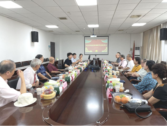 9月30日下午,外语学院在3008会议室召开退休教授代表座谈会,邀请从学院英、俄、德、法、日、翻译和大学英语部退休的12位教授代表出席,院党委书记黄宏发、院长李圣杰认真倾听老教授的诉求和对学院离退休工作的意见建议,虚心求教,请老教授们畅谈感想体会,为学院发展建言献策。院党委副书记周翠芳主持座谈会。