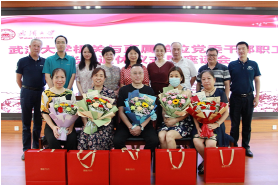 黄丽宣读了慰问信,谭玉敏、黄丽、胡丽红、张辉代表学校党、工、离退休组织为荣退干部职工送上鲜花和纪念品,祝愿他们在新的人生阶段能保持积极向上、健康乐观的心态,安享幸福退休生活。