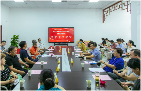 6月30日下午,图书馆2022年上半年退休职工荣休座谈会暨“光荣在党50年”纪念章颁发仪式在总馆E栋第一会议室举行。图书馆党委书记尤传明、馆长董有明等在馆领导、各部门负责人、2022年上半年退休职工、“光荣在党50年”党员、党支部书记代表及老协负责人等近40人共同见证了这一温馨时刻。董有明主持仪式。